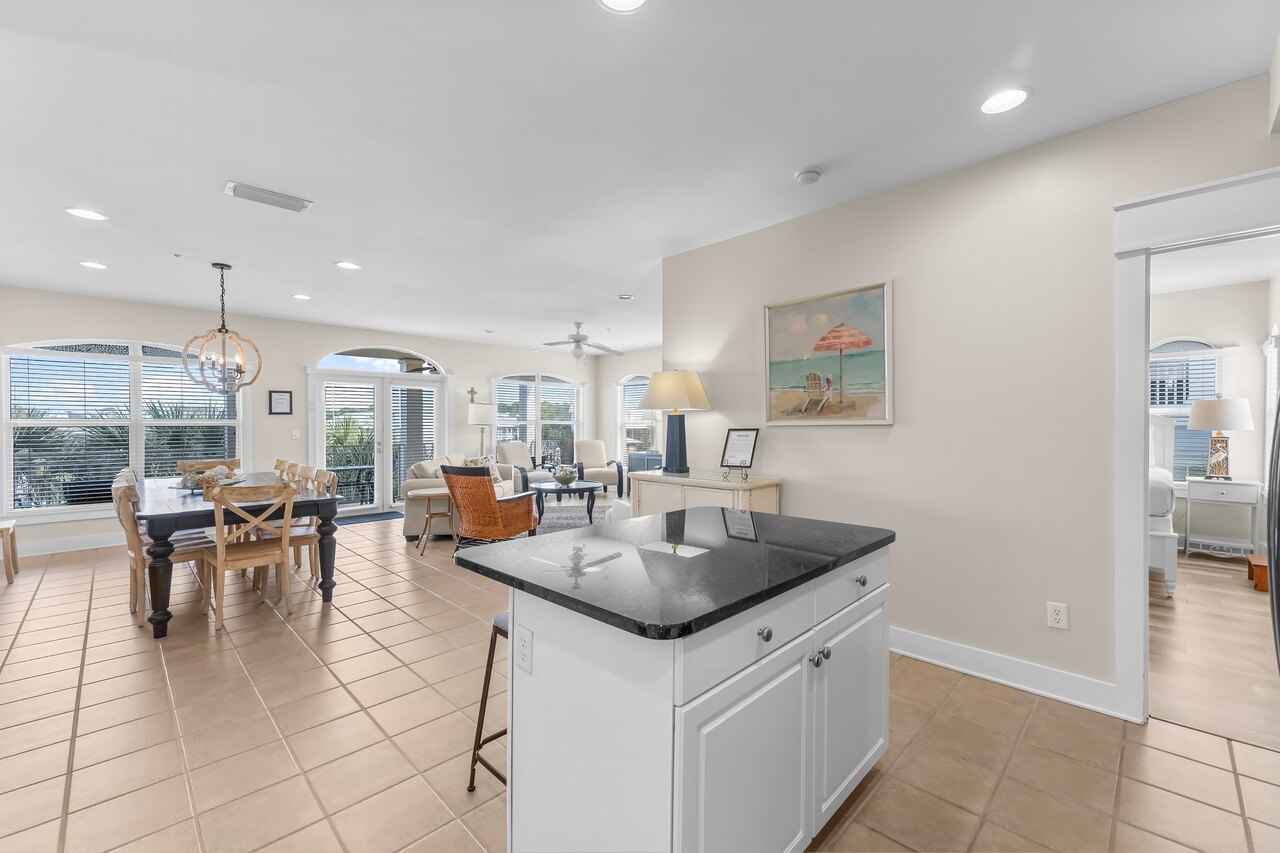 WELCOME TO C302 AT THE VILLAS! WE ARE SO GLAD TO HAVE YOU! LAGOON POOL & POOL DECK CLOSURE: October 27, 2025-November 24, 2025. Planned closure for resurfacing. We apologize for the inconvenience. This unit always offers a fresh start for each season!!!! It's ready for your stay!! Check out the new updated pictures!! Continuous updates and "Fluff" - 2 new sets of Twin over Twin bunks - Fresh look for middle bedroom - Sofa is a sleeper, part of sleeping 12 - Comfortable and spacious seating in common room - Many lamps with USB inserts - Dining table comfortably seats 10 - Patio tables accommodating meals on the porch while viewing the lagoon pool - Updated full bath - Well stocked kitchen - Two patio ceiling fans to keep you cool LOCATION: Villas at Seacrest Beach, Seacrest, Beaches of South Walton, Florida North West, Florida, USA North side of 30A, walking distance to the beach or take free tram service. Access to the 12,000sq. ft. lagoon style pool. Parking for 2 cars only NO GOLF CARTS ALLOWED! Lagoon pool will be closed from Nov 6th until Nov 20th 2023 ACCOMMODATIONS: Condo, 4 Bedroom , (Sleeps 12), 3 Baths, Full Size Laundry Room Have you ever dreamed of vacationing at an Italian villa? Then make “First Place at the Villas” your choice. This classy third story condominium is located along the ever popular, beautiful 19-mile beach road 30A. Overlooking the rear balcony, view a beautiful 12,000 square foot pool that includes waterfalls, fountains, and lush, tropical landscaping. Also recently added is a "Snack bar/Café" for vacationers convivence at the pool. Maybe you are searching for a vacation inviting you to enjoy casual elegance, yet meets the needs of practicality and comfort—LOOK no more. “First Place at the Villas” was created especially for you!!!!! The unit’s floor covering is predominantly ceramic tile, but all four bedrooms have laminate plank flooring. Guests enjoy a spacious, open floor plan with a beautiful, well-stocked kitchen complete including tile backsplash and granite countertops. Adjoining the kitchen is a large great room: to the left a large dining area that accommodates 10: the family room to the right provides comfortable seating, practical lighting, and a 65" TV. Leading from the center are French doors opening onto a wide pool front porch. Here you can enjoy the incredible view relaxing from the huge balcony overlooking the lagoon pool. This 2000 square foot condominium is handicap friendly, sleeping 12. Featured is a grand master suite with an adjoining bath that includes a Jacuzzi. One guest suite with a full adjoining bath, plus two additional bedrooms that share a full bath, completes the layout. Bedrooms are equipped with 55" TVs. If accessibility to activities is one of your vacation requirements, then “First Place at the Villas” passes the test with flying colors. A three-minute stroll takes you to the shops, cafes, and restaurants of Rosemary Beach and Alys Beach. And of course, a short walk or tram ride takes you to the Gulf of Mexico’s crystal-clear waters and white sand. Access to a seventeen-mile bike/jogging trail, or to the pool entrance gate, is located just outside your front door. And golfers, the Tom Fazio designed “Camp Creek” course, is just down the road for tee-off time! And for those who prefer a “Shop till you Drop” experience: a fifteen-minute drive invites you to ALL the shops, restaurants, and entertainment choices at Pier Park. PLUS CONVENIENCES FOR C302 -Two Reserved Parking Spots -Easy Elevator Access -“One-Level” layout promotes safety and common conveniences -On Site Security -Complimentary Tram Service at Villa Entrance TO and FROM beach DO NOT MISS your chance of your dream vacation-A RETREAT TO “FIRST PLACE AT THE VILLAS” UNIT C302. RESERVE TODAY –Enjoy life at its very BEST!! You must be at least 25 years of age to rent this property. During Spring Break , the minimum acceptable ratio is one (1) person 25 years of age for every two (2) persons under 25 years of age.