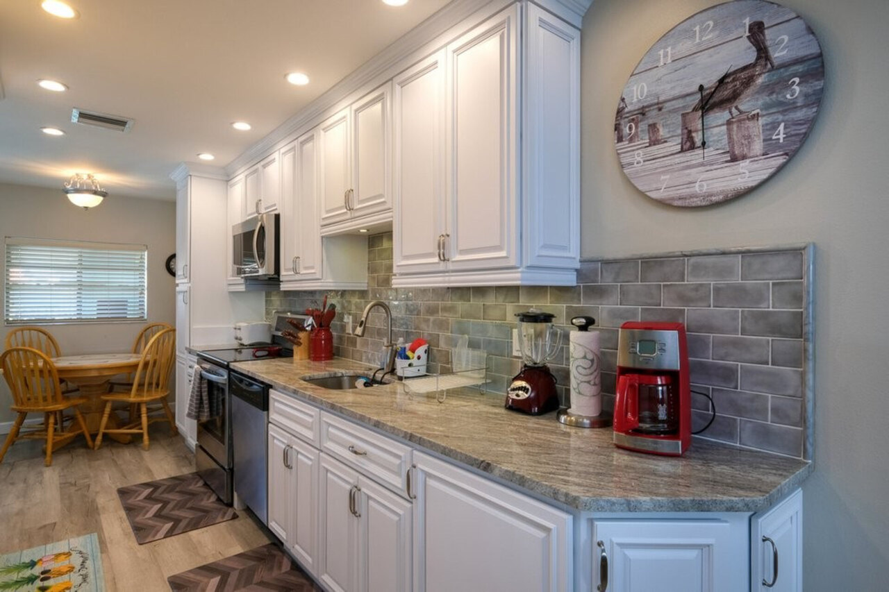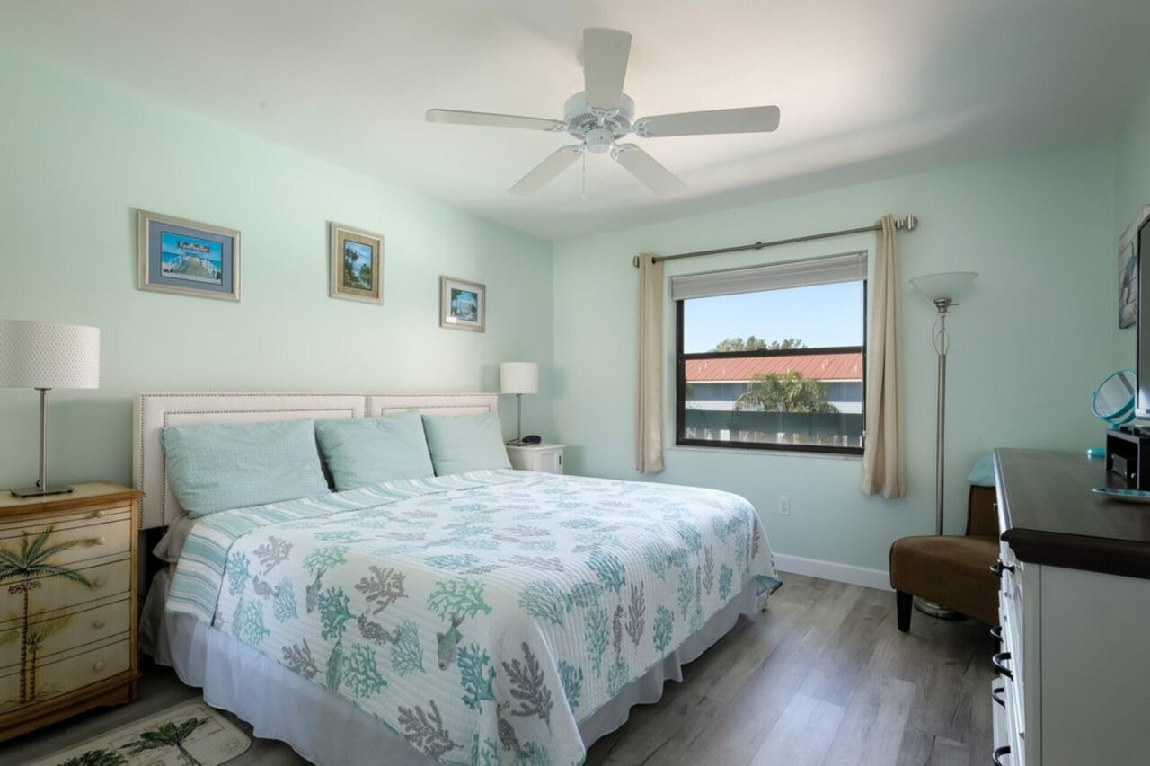 What a gem of a spot to spend your Anna Maria Island vacation! This lovely two bedroom, two bath condo is directly bayfront offering amazing views, yet only a 3 minute walk to the beach! WHEN RENTING GOLF CARTS - GAS ONLY. NO ELECTRIC The guest bedroom in Bay Watch 3B, which has two twin beds, can now optionally be set up as a King bed (via a bed bridge kit between two twins), making it a more versatile setup. The default setup will be two twins with the bed bridge insert kit located in the guest closet. Bed configuration: -Master bedroom – One King Bed (with ensuite full bathroom) -Second bedroom – Two Twins or can be set up as One King Bed (with dedicated full bathroom) -Living room – New Queen Sleeper Sofa So many features will make this roomy, light, and bright, nearly 1,100 square foot Bay Watch 3B condo a place you return to year after year! The kitchen was recently updated, with new plank flooring, and freshly painted walls and ceiling. It features beautifully remodeled bathrooms, comfortable furnishings, flat-panel televisions in the living room and both bedrooms, ceiling fans in both bedrooms and in the living room, and a stacking washer and dryer right in the unit. Your master retreat consists of dual vanities and a large walk-in closet. The sliders and windows were also replaced 2021. It's thoughtfully equipped with everything you'll need for your beach vacation, from blow dryers in each bathroom to plenty of kitchen supplies to make meal prep a pleasure to beach chairs, beach umbrella, beach wagon, a cooler, and beach toys. But the thing that really stands out here is the non-stop view, which you can enjoy from just about every spot in the complex…even your two covered parking spaces under the building sport a panoramic view! And as soon as you walk in the front door of your unit, you can see right through to beautiful Sarasota Bay. Stop, put your luggage down, and walk onto the large deck, accessible through either the living room or the master bedroom. This is definitely the place you'll spend a lot of time watching for dolphins, manatees, and other marine and seabird life, enjoying the antics of boaters zipping from one spot to another on the Intracoastal waterway, or soaking in the serenity of each day's perfect sunrise. Although the inside of the unit features both dining and kitchen tables, it's likely you'll spend more mealtime right here on the balcony dining al fresco! When you're able to pull yourself away from the deck and want to head to the beach, it's just a short three-minute walk or 300 steps until your feet touch the sand. You walk down a palm-lined walkway to the white sand and crystal clear waters of the Gulf of Mexico. Set up your chair and umbrella, break out a cold drink, open a good book, and relax! Need a little exercise? Whether you're in the mood for just a short stroll at sunset or you're an Olympic-level walker, the entire 7 and a half miles of breathtaking white sand beaches can be reached right from your special spot! Sometimes it's a dip in the pool that's exactly what you want; the sparkling and heated Bay Watch pool is nestled in an open courtyard right at the bottom of your stairs. Anyone in your group who likes to fish (or enjoys sitting on the dock on the bay) will love the Bay Watch fishing pier that extends into the bay. You'll find complimentary fishing pole equipment in Bay Watch 3B, too! Although your unit features a well-equipped kitchen, you'll want to explore some other dining options! There are several restaurants within walking distance, including Wicked Cantina, Gulf Drive Cafe and Tiki Bar, Beach House Restaurant, and more. And, with just another few minute's walk you arrive at Bridge Street, which is famous for its fishing pier, beach shops, boutiques, and restaurants. It's easy to leave your car parked at the condo and hop on the free Anna Maria Island Trolley right at the end of your street. Bay Watch 3B is also services by the Old Town Tram (and Monkey Bus too!) Just call them, and they'll pick you up right at the condo! Take it north or south to explore the Island and experience its many yummy restaurants and cool shops. Running every half-hour from Coquina Beach at the very south end of the Island to the Historic Anna Maria City Pier at the north in the village of Anna Maria, the trolley is a fun way to travel the Island and runs 7 days a week from 6 in the morning until 10 at night. This wonderful Bay Watch 3B unit sleeps 6 people in one king bed, two twins, and a sofa bed. Guests can enjoy the use of free high-speed wireless internet, landline phone with free long-distance calls in North America, and cable television with more than 100 channels. PLEASE NOTE! This unit is a third-floor walk-up, which means two flights of stairs, which are outside and covered. Although the stairs are well-designed and easily managed, with a landing at the half-way point on each flight, there is no elevator at the complex. At the top, you'll be rewarded by a SPECTACULAR view and peacefulness with no one above you! Additionally, the BayWatch condo complex does not allow smoking anywhere on the property, including the balconies and parking garage.