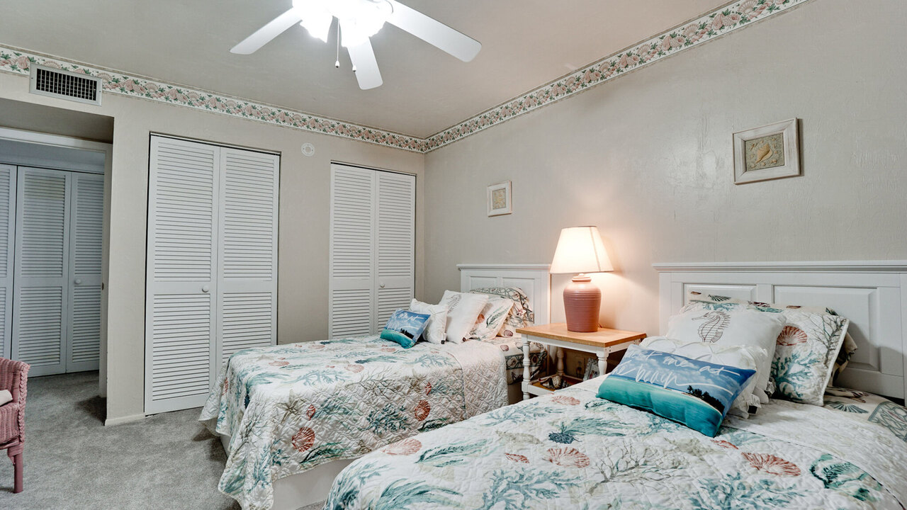 Settle into your own corner of island life in this gorgeous, 2 bedroom/2 bathroom condo at Runaway Bay! Truly a magical destination! Fully equipped with furniture, bedding, appliances, and cookware. Located merely steps from the pool. Bring your provided beach equipment, walk only a few steps and you're on the beach! Perfect for the whole family or a romantic getaway, this super comfortable vacation rental offers free WiFI, TVs in each bedroom and a large TV in living room. A screened and furnished patio with intimate seating, perfect for morning coffee or just a quiet place to start or end your sunny Florida day! Stock up on sunscreen, pack your flip-flops, and get ready for an incredible island vacation on Anna Maria Island! Make your reservation today! WHEN RENTING GOLF CARTS - GAS ONLY. NO ELECTRIC AS OF 2/10/25 ALL AMENITIES INCLUDING POOL AND FITNESS CENTER ARE NON-FUNCTIONING DUE TO HURRICANES MILTON AND HELENE. THIS COMPLEX IS AN ACTIVE CONSTRUCTION ZONE DUE TO HURRICANE REPAIRS. The Runaway Bay Condominium has a lot to offer our guests: • Tennis Court • Fitness Center • Largest Solar Heated Swimming Pool on Island • Shuffle Board • Bocce Ball • Clubhouse with wifi • Deeded Beach access across street • Beautiful Fishing Pier • Charcoal Grills on property for guest use • On-Site Rental Management office • Kayak & Canoe Launch There is also a lot to do in the surrounding area: Runaway Bay is in walking distance from the Historic Bridge Street, the Hub of entertainment in this wonderful beach community, a street where you can shop, dine, and play from beach to bay. The free trolley also makes a stop on Gulf Drive, right in front of Runaway Bay’s complex. Take the trolley to the beach or anywhere else you want to visit on the island without worrying about getting sand in your car. Visit downtown Anna Maria Island, Holmes Beach, or any of the local restaurants or establishments. You can even jump on the trolley for just a scenic ride around the island! In addition to the free trolleys, locals and visitors alike can travel up and down the island for exceptional quality seafood restaurants and coastal living shops via bike, golf cart, kayak, or boat. This area also offers a great variety of boat tours, fishing charters, parasailing, scuba diving, and Golf among many other exciting activities. There is no better way to experience Florida’s Gulf Coast than spending your vacation at Anna Maria Island. Whether you’re booking a family vacation or a trip with friends, be sure to call your travel agent and make reservations at this coastal condo at Runaway Bay!