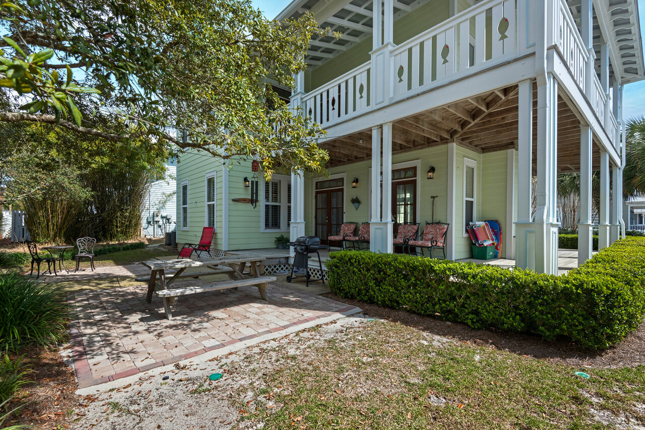 Welcome to 'La Dolce Vita...' 'The Sweet Life!' Just one block to our gorgeous white sand beaches! This beautiful beach home with community pool is nestled in the popular Crystal Beach Community of Destin, Florida. The perfect place for a fun filled beach vacation with family and friends. Community allows 2 cars per unit. Cool off in the community pool or stroll down to the beach and take a dip in the world famous emerald green waters of the Gulf of Mexico. Enjoy walking, jogging, skating and bicycling throughout the neighborhood with charming white picket fences and pastel cottage homes or on the bike and running path that runs parallel to the beach just outside your door. Come home and relax on the oversized covered porches with fans that surround the house and enjoy the beach breezes. Believe it or not... in the Summer, you can listen for the music of the ice cream truck! Just a three minute walk to rent bikes for the family, get a cup of fresh coffee across the street, go shopping, or eat a delicious meal at Camille's or any of the fantastic restaurants in the neighborhood. 'La Dolce Vita' is a 2000 square foot home with three bedrooms and three baths. All bedrooms have French doors that open to the upstairs porch with comfortable outdoor seating. There is a queen sleeper sofa in the living room. The master bedroom on the second floor has a king bed and master bath with a jacuzzi tub and oversized shower. The second bedroom located on the second floor has a queen bed. The third bedroom has two twin beds. There are also built in bookcases on the first and second floor with a great selection of books to enjoy. On the first floor, you will find a fully equipped gourmet kitchen and dining area with granite counter tops and top of the line stainless steel appliances... a large living area and French doors that open to the porches, a full bathroom and laundry room with your own washer and dryer. After a relaxing day at the beach, you can wash off at the outdoor shower. 'La Dolce Vita' has it all! This home includes a credit based on the duration of your stay for additional amenities offered by VayKGear such as bikes, paddleboards, games and chairs. You will receive a notification after you confirm your reservation with additional details. One Small, house trained, non shedding dog is ok with management approval and $150 non-refundable pet fee. Destin Elite Carts (additional purchase) As a perk of being a Best Beach Getaways customer, we have partnered with Destin Elite Carts to provide our Vacation Rentals with the Ability to Rent Brand New 2021 EZ-GO 6 Passenger Gas Carts! Guests will need to contact www.destinelitecarts.com and pick their desired cart and dates. The carts will be delivered to your rental the day you arrive and picked up upon your departure. As an added benefit, any 6 night or above rental will be provided with Discounts and Incentives to some local Businesses and Restaurants! No Hassle and FREE DELIVERY! Book today!