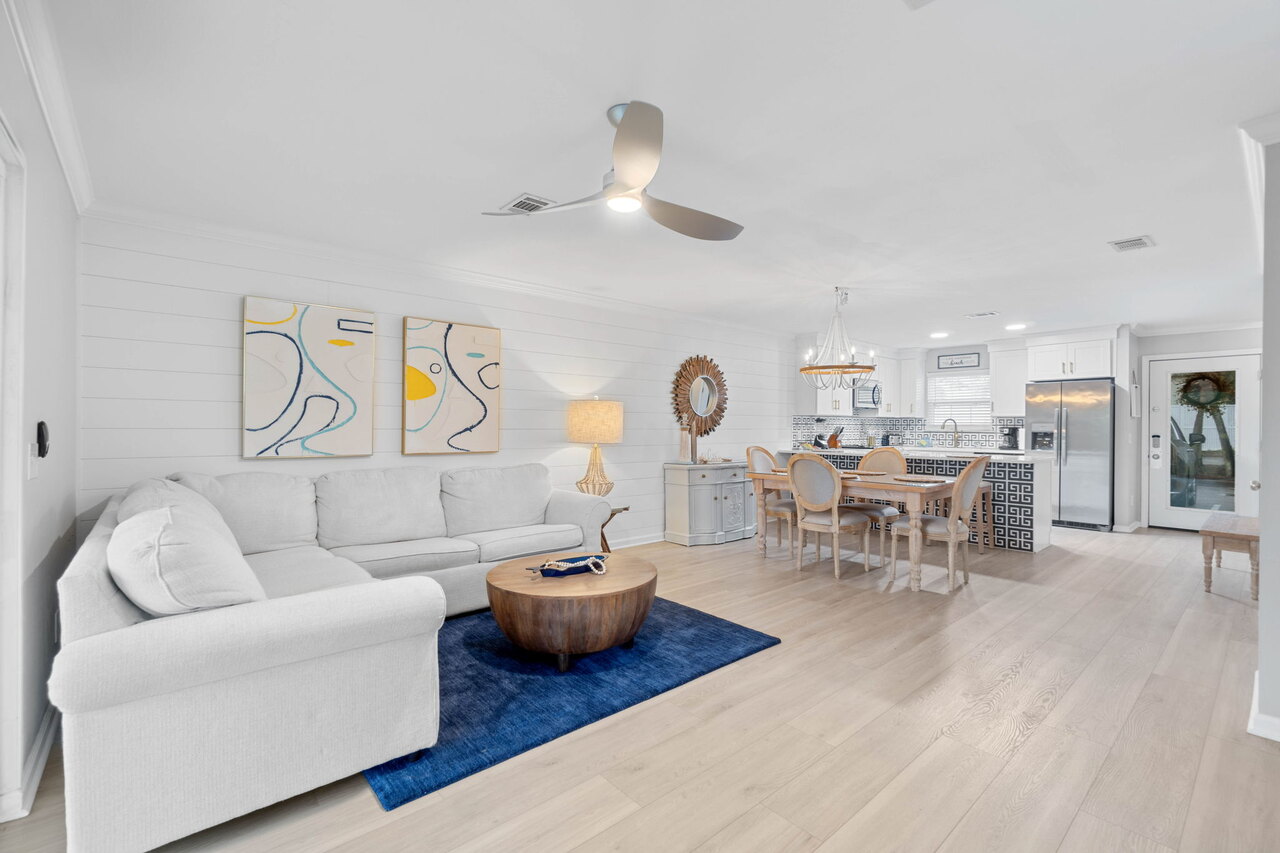 Shore to Please: Family-Pet-Friendly Beach Cottage Near Miramar Beach in Summer Lake Townhomes Welcome to Shore to Please! This charming 2-bedroom townhome in the Summer Lake Townhomes community offers a relaxing escape just minutes from the beach, dining, shopping, and more. Perfect for families, it comfortably accommodates up to 8 guests and your dogs less than 25 lbs! (Non refundable Pet fee required-two dogs max) Inside the Townhome: Living Area: Cozy furnishings, beach-inspired décor, and a large 65' flat-screen TV for movie nights after a day at the beach. Kitchen: Fully equipped with stainless steel appliances, cookware, and utensils for easy meal prep. The kitchen flows into the dining area, with seating for 6 and a breakfast bar. Half Bath off the Kitchen area for convenient downstairs usage. Bedrooms: Master: King bed, flat-screen TV, and an ensuite bathroom with a walk-in shower. Guest: Twin over Queen bed with Trundle, flat-screen TV, and an ensuite bathroom with a tub/shower combo. Additional sleeping: Full-size sleeper sofa in the living room. Outdoor: Enjoy the screened-in porch with outdoor seating, perfect for family meals and scenic lake views. Key Amenities: 2 Bedrooms, 2.5 Baths Screened-in porch 2 Flat-screen TVs (Living Room & Bedrooms) Free Wi-Fi Washer/Dryer in the townhome Community Pool 2 Private Parking Spaces right outside the townhome Small dog friendly up to 2, less than 25 lbs (Non refundable $250 Pet fee per dog required) Nearby Attractions: Beaches: Just a short walk to Miramar Beach public access. Shopping: Silver Sands Outlet Mall, Grande Boulevard and Destin Commons offer a range of shopping, dining, and entertainment options. Dining: Local favorites like Kenny D’s, The Crab Trap, Surf Hut Austin's and Pompano Joe’s are just a short drive away. Outdoor Activities: Explore the area by bike or foot along Scenic Highway 98, or enjoy water sports, fishing, and golfing nearby. Entertainment: From the Track Amusement Center to Big Kahuna’s Water Park, there's fun for all ages. Evening activities include upscale dining and live entertainment at Destin Commons. Also included with your confirmed reservation are additional beach gear amenities. Look for the email with the credit voucher to apply towards gear of your choice such as bicycles, beach carts, paddle boards, kayaks and more! Whether you’re here for the beach, shopping, or outdoor adventures, Shore to Please offers the ideal base for your Miramar Beach getaway!