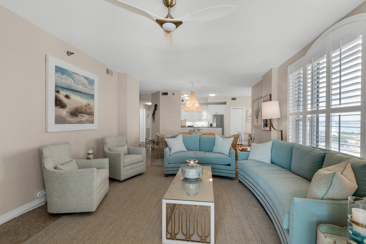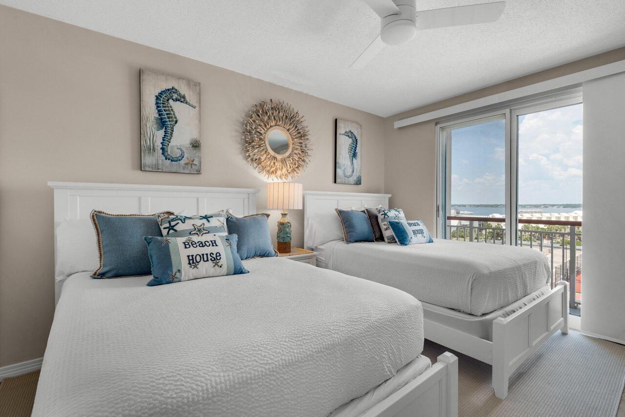 Beach Colony E 5A General Info Vacation Rental Operations Distribution Performance Description 10 Check out “Surfside”. This recently renovated condo boasts all new paint, appliances and furniture. This one is a beauty! Decorated in a teal blue, as soon as you walk in the door this condo is guaranteed to make you feel right at home at the beach! Surfside is a 3-bedroom, 3 full bathroom condo located in Beach Colony Resort on the 5th floor of the East tower on Navarre Beach. This unit has a newly installed air purifier in the unit. The air purifier cleans the air of allergens, germs and viruses. This is great for those will bad allergies. Surfside is a condo that has it all! As soon as you step inside, you will feel like that vacation has just started. This condo has an open floor plan where you can be in the kitchen cooking yet still able to see and talk to your family from the living room. Enjoy your fully equipped kitchen, granite counter tops, big pantry, and even your very own personal wine cooler next to the refrigerator. Sit at your kitchen table eating while looking out at your views of the sound. Surfside has a full-size washer and dryer in the condo. You will enjoy those beautiful sunsets from your big gulf front balcony off the living room, complete with a table and chairs. It is the perfect spot to enjoy a cocktail outside overlooking the Gulf of Mexico. This condo sleeps 8 people. The master bedroom is the perfect oasis with a king bed, private master bath including both a walk-in shower and a jacuzzi tub. Enjoy the Gulf front balcony from your master bedroom. There are two guest bedrooms in this condo. The first guest bedroom has a king bed, complete with a private balcony with sound side views, and the second guest bedroom includes two queen beds, as well as another private balcony with views of the soundside. Ceiling fans and flat screen televisions are in each bedroom. Surfside features a second bathroom with a tub/shower combo, and a third bathroom with a walk-in shower. This Beach Colony Resort has tropical landscaping, and offers an ocean front outdoor swimming pool, as well as charcoal BBQ grills for guests. There is also a fitness center and tennis courts. Beach Colony Resort is located directly on Navarre Beach and provides private beach access reserved for guests only. Beach chairs and umbrellas are also available to rent! This resort provides covered parking and is within walking distance to the Navarre Beach fishing pier, restaurants and bars as well. Again, this condo has it all! SEA you at Surfside! Surfside requires at Saturday to Saturday stay.
