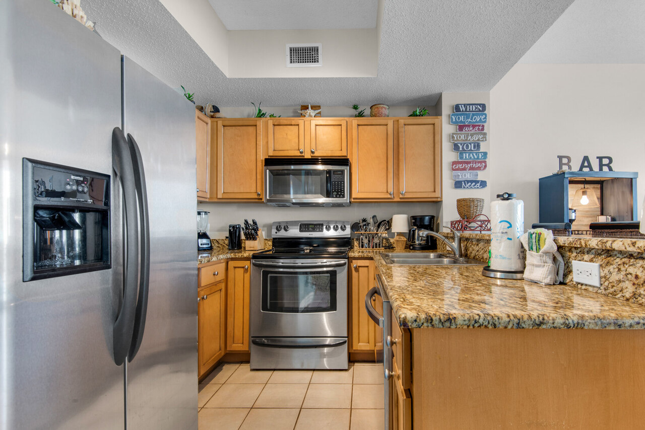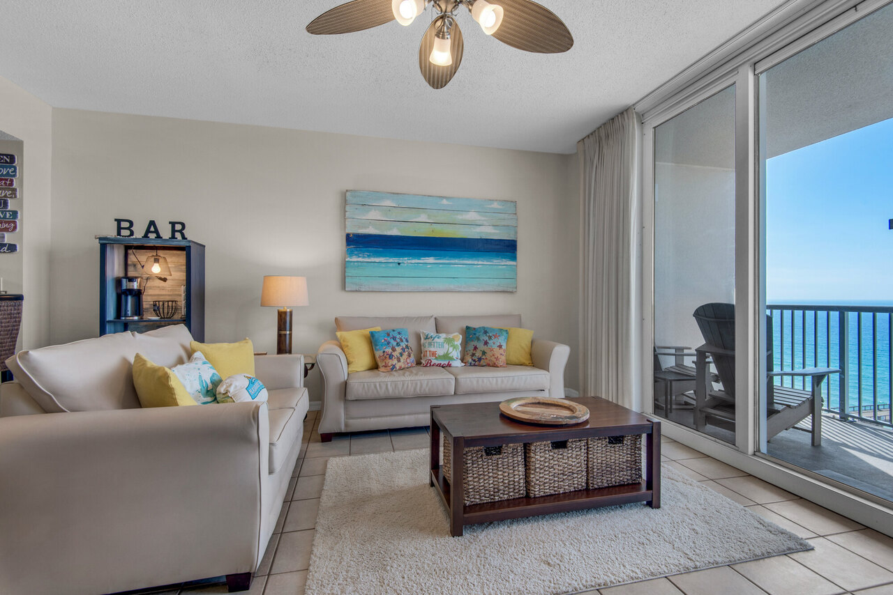 You will be feeling "Just Beachy" in this 10th floor unit with breath taking views from the private balcony. This nicely decorated 1 bedroom with bright colors sleeps 6 comfortably. The secluded master bedroom has a king size bed and flat screen TV/DVD, perfect for putting up your toes after a long day in the sand. The bunkbed in the hallway alcove, and queen sleeper sofa are perfect for guests and little minnows visiting with family. Navarre Beach is a wonderful vacation place for families who enjoy nature walks, dolphins, white sand and leisure days spent in the sun.