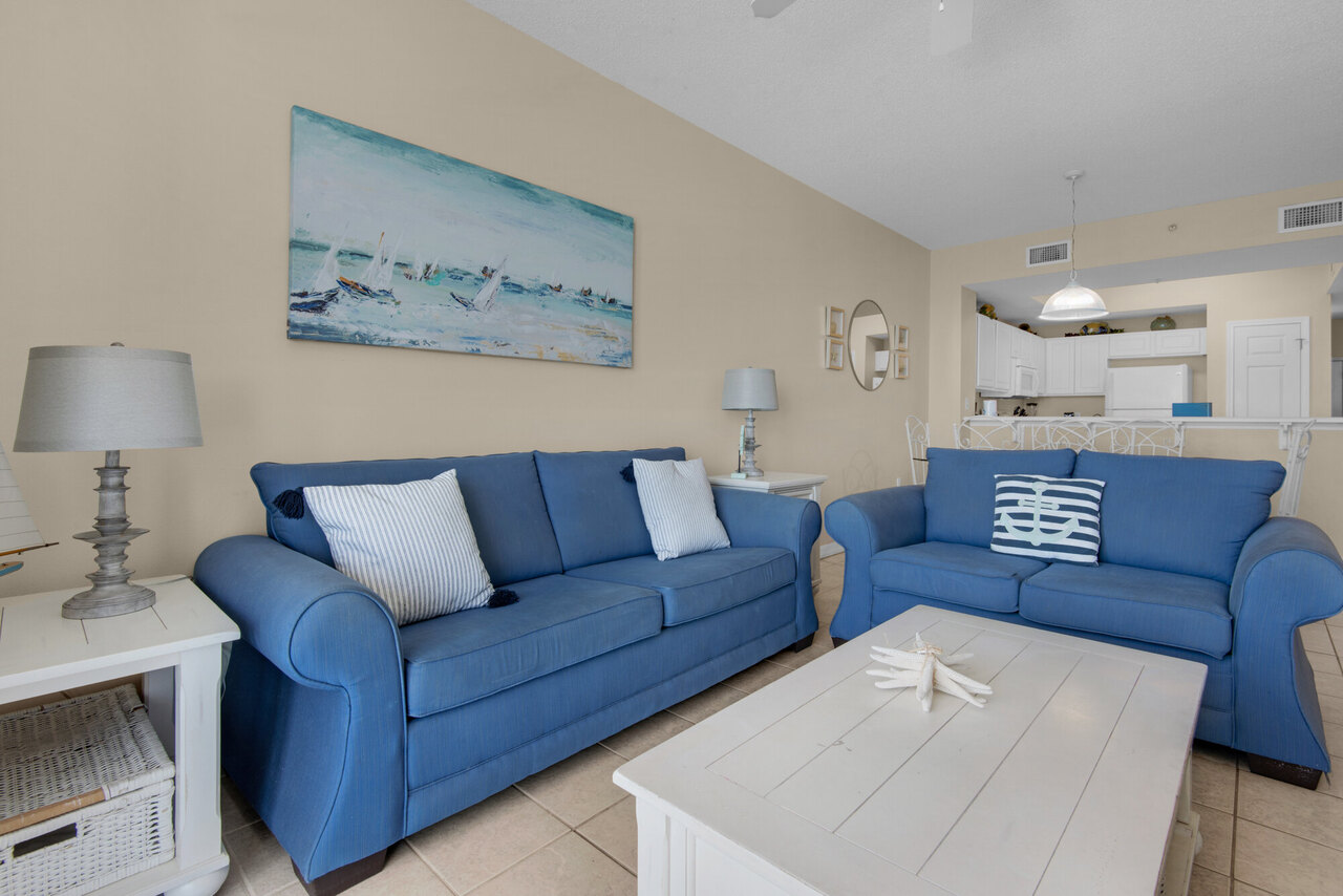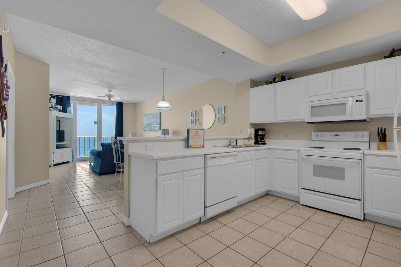 Entering 1103 in the center tower at the Summerwind Resort will make you say “Oh Whale” to your worries as you let them float away in the Gulf of Mexico. The first room on your right, has a set of bunks and it's own TV, making it perfect for any little ones you have with you. As you make your way down the hallway, you will encounter the laundry room with a full size washer and dryer, as well as the second guest bedroom with the two double beds, and a flat screen as well. This room has its own access to the hall bathroom complete with a shower / tub combo. Enjoy the view from the kitchen, dining room and living room before heading to the master bedroom. The master is exactly what you'd need from a gulf front bedroom: Comfortable King Bed, Flat Screen TV, DVD Player, balcony access and a gorgeous view. The ensuite master bathroom features a shower / tub combo, and a double vanity. There is seating for up to 6 guests in the dining room, although the living room is certainly where you will most likely spend your most time in this unit, because of the view. Say "Oh Whale!" to all of your troubles and relax by the beautiful Emerald Coast today!