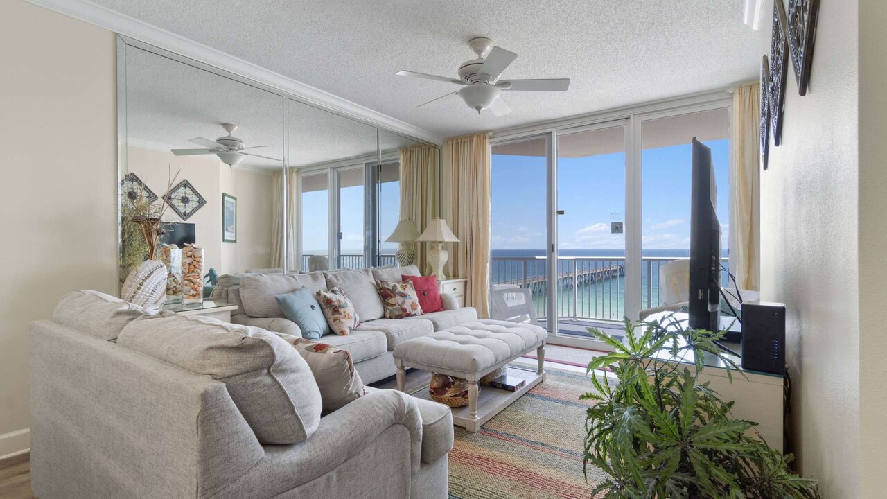 Summerwind 802C is a spacious 2 bedroom 2 bath which sleeps 6, located on the 8th floor is everything you want when going on vacation. With updated appliances and beautiful views Summerwind 802C is the perfect condo. The master bedroom has a King size bed, flat screen TV, a large conjoined bathroom with a walk in shower, and a gorgeous view of Navarre Beach. The guest bedroom has two full size beds as well as a flat screen TV. Enjoy your gulf front balcony where you can take in the sights while enjoying that morning cup of coffee. Enjoy beautiful sunsets and drift off to sleep at night to the sound of the surf. Relax in one of 3 gulf front pools or hot tubs and exclusive use of the fitness center at the Summerwind Resort. Navarre Beach is located on Santa Rosa Island, a barrier island in the Gulf of Mexico. Navarre Beach is one of the most beautiful beaches along the Florida panhandle and has a quiet relaxing vibe while offering plenty to do. The island is surrounded by the Santa Rosa Sound on one side and the beautiful gulf on the other, so there is something for everyone to enjoy. There is a boat ramp and water recreational vehicles for rent within walking distance. Immediately to the east of Navarre Beach is the Navarre Beach Marine Park, a former Florida state park. Immediately to its west is a portion of the Gulf Islands National Seashore, and farther west is the community of Pensacola Beach. Navarre is named the "Best Kept Secret" for a reason. There are 20 miles of federally protected beaches to enjoy and 15 miles of bike paths.Â