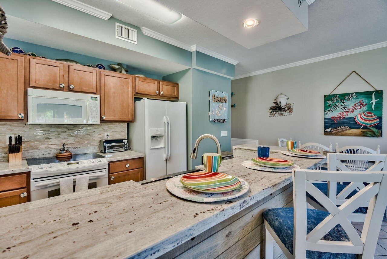 Sandpiper L01- We've updated even more! Just added January 2020 new granite counter tops with farmhouse sink. You will love walking into this newly remodeled condo with its fresh beach vibes and coastal feel. The owner has done a fantastic job remodeling this condo with soft pops of color all throughout the condo. This spectacular lanai level unit is a one bedroom, a bunk area and two full baths with sliding doors leading directly out to the pool area from the living room. You will be able to enjoy your own ground space with a table and chairs for eating outdoors and a chaise for relaxing and reading a book while the rest of your family enjoy the pool from the front of the condo. How convenient is that? This condo features a full kitchen with upgraded appliances and everything you should need to fix a meal for your family. There are flat screen tvs in every room, wireless internet, and everything else you will need for a relaxing vacation. Sleeping arrangements are: king bed in the large master bedroom and bunk beds in second room. There is also a sleeper sofa for you to use, as well. This is a Lanai unit, which offers the luxury of having its own private gas grill and outdoor kitchens and convenience of access to the lazy river directly from the back patio. You can enjoy a nice cold beverage on your patio all while watching the kids float by in the lazy river. Come and enjoy beach to bay access, a 700 foot lazy river, four heated pools, three hot tubs, a total of four swimming pools, and a kiddie splash pool. This is a much sought after resort and this is a convenient and bright condo. I could go on and on about this unit but I think the pictures say enough and they do not do the condo justice. The only thing you will dislike about this condo is that you will have to leave it eventually. Destin Area Information Destin is well known as the World’s Luckiest Fishing Village largely because of it roots as a top fishing destination and quick access to deep waters of the Gulf of Mexico. Destin boasts the largest charter fishing fleet in the state of Florida. If you have an interest in charter deep sea fishing – Destin is the place. But, there is much more to Destin than charter fishing. It is a top beach vacation destination. Featuring sugar white sand beaches and emerald colored water, it is an absolutely beautiful area. The town itself offers many upscale shopping, dining, and entertainment opportunities. Much of the development of the area has been done with luxury lifestyles in mind. Destin also has one of the busiest private airports in the country. Walk to: Ft. Walton Beach Boardwalk 'Gulfarium' Fishing Pier Emerald Coast Conference Center The Crab Shack Rockin Tacos Wild Willy's Adventure Park