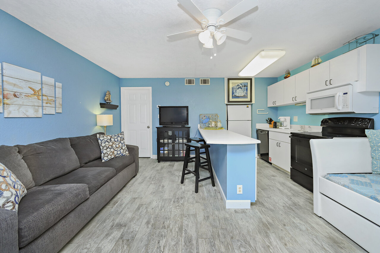 Quaint one bedroom condo that was recently updated with new floors and paint, features a Queen in the Master, Queen Sleeper sofa and a two Twin trundle in the living area. Step across the parking lot to the beach access just minutes to a beautiful stretch of beach! Unit features a kitchenette suitable for cooking a full meal to share with your family. When you are not out enjoying the beach, the unit features WiFi and a television in the living room and master for your enjoyment. Located convenient to Brooks Bridge, you cross over into the city of Fort Walton Beach, where you can shop the popular downtown district, visit the Indian Temple Mound, and ancient Native American temple mound and museum of artifacts, or take the Downtown Historical Walking Tour, a self-guided tour that begins when you pick up a brochure at the Chamber of Commerce. In Fort Walton Beach, you will find Eglin Air Force Base, one of the world's largest, and it's Air Force Armament Museum. Just seven miles away - a short scenic drive through a portion of Gulf Islands National Seashore - is Destin, where you'll find more shopping, restaurants and nightlife. Book now for a fun filled vacation! You must be at least 25 years of age to rent this property. During Spring Break , the minimum acceptable ratio is one (1) person 25 years of age for every two (2) persons under 25 years of age.
