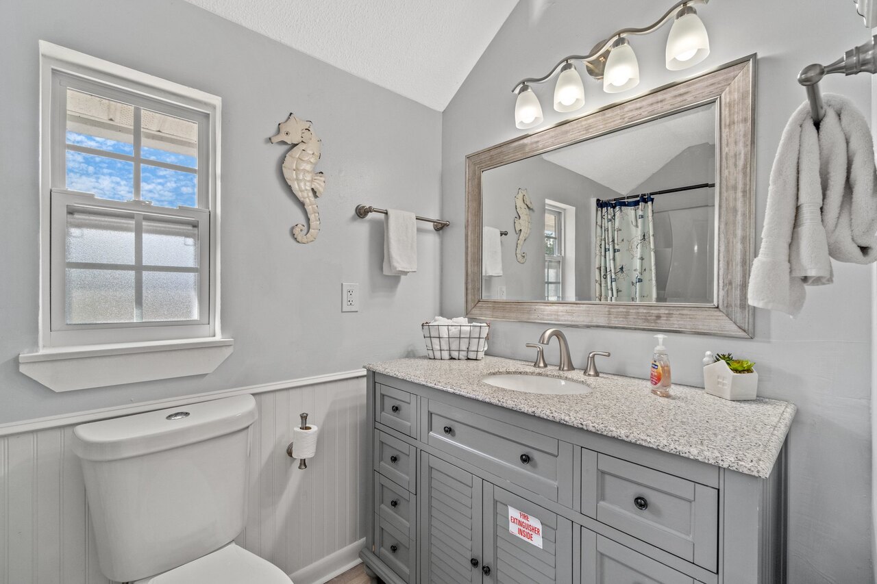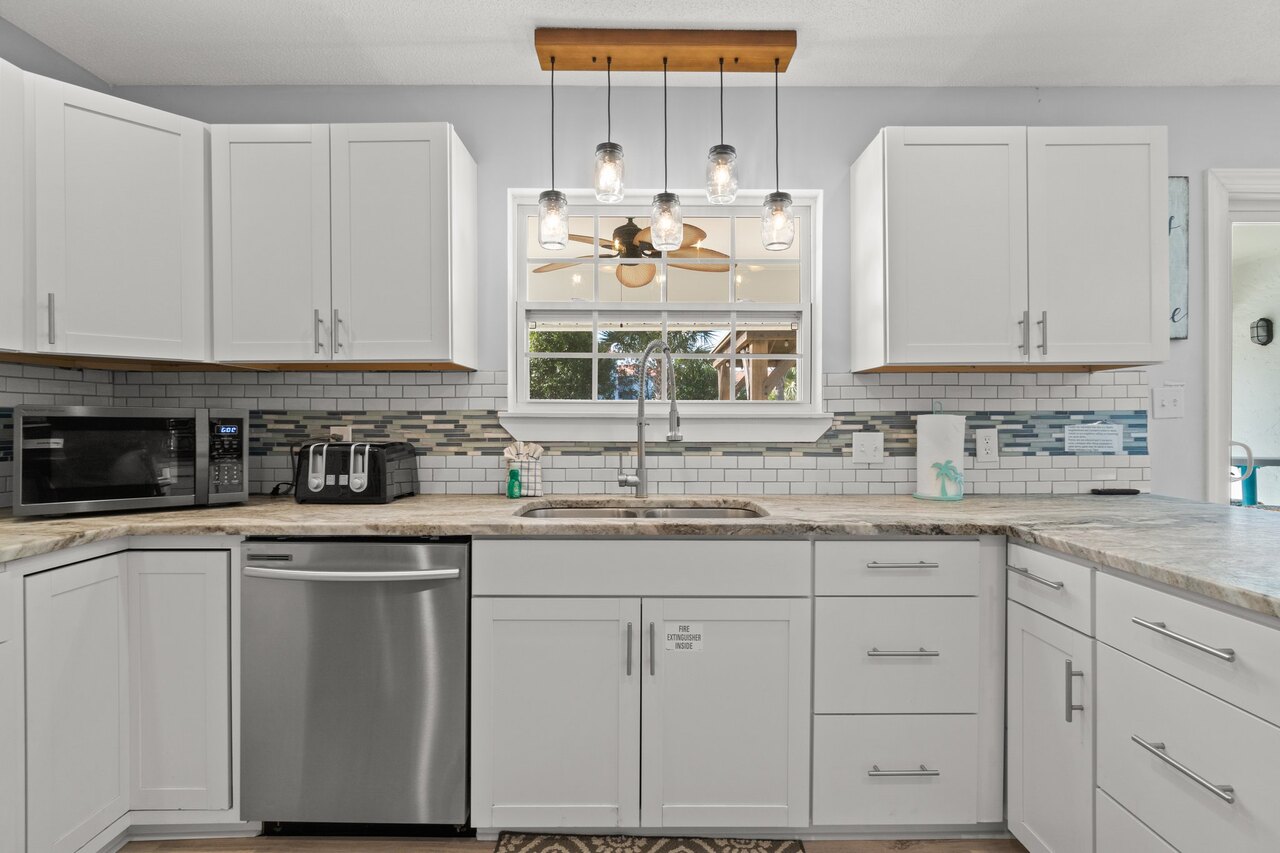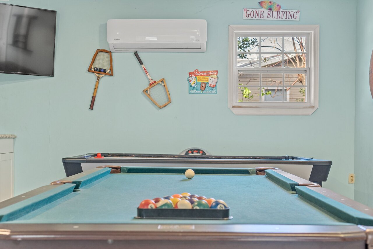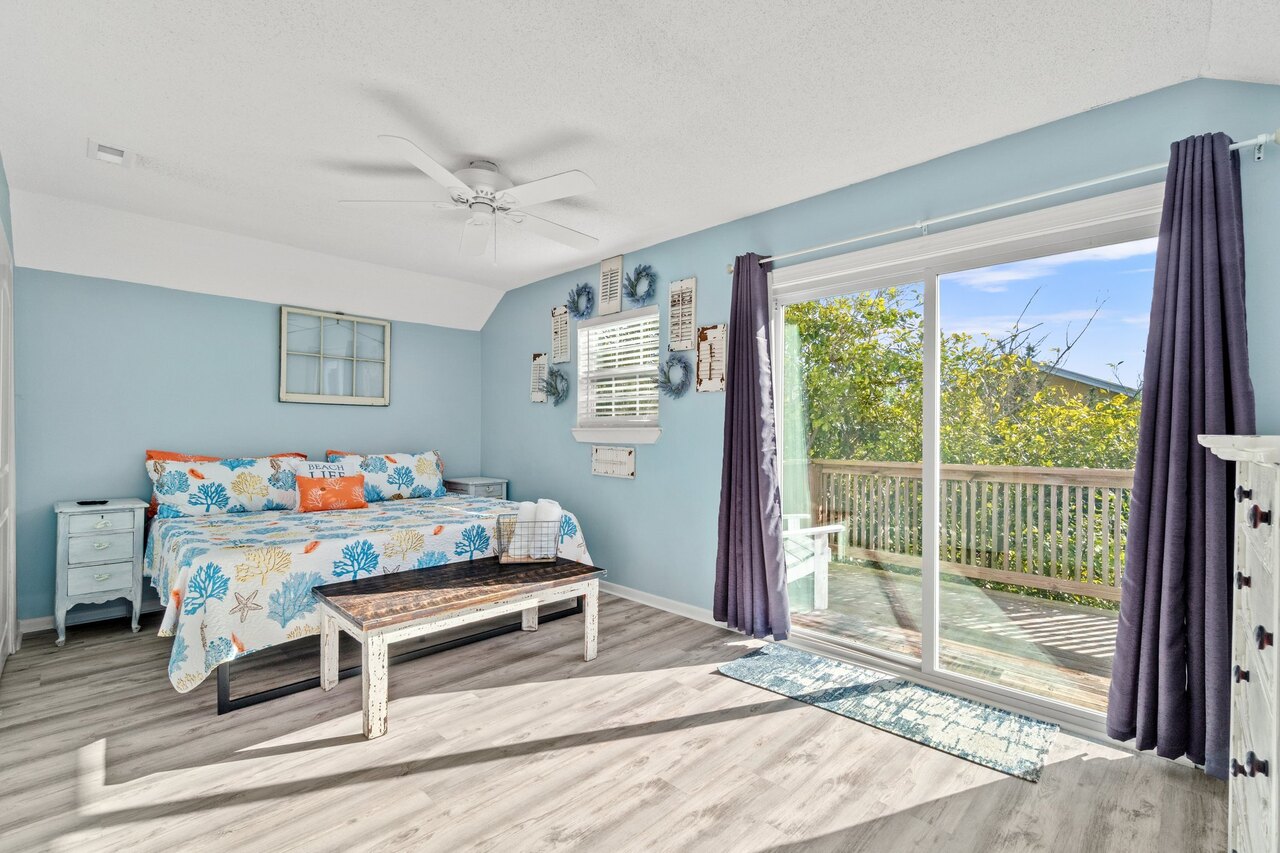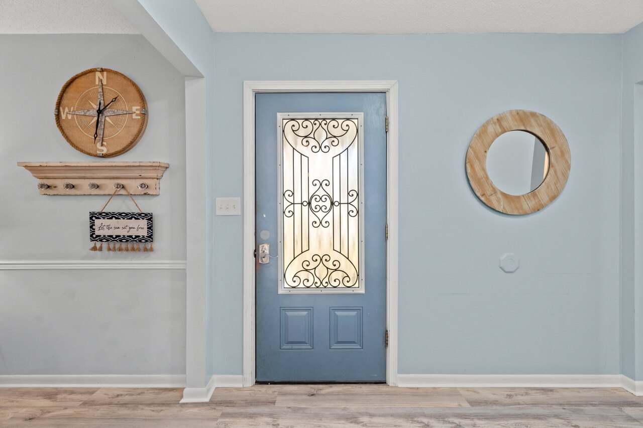 Welcome to the FLIP FLOP STOP! This large 4 bedroom home is located in the quiet west end of Panama City Beach and is dog friendly, you can have 2 dogs with a limit of 25 pounds each for a nonrefundable fee. Far from the hustle and bustle yet close to the beach and Pier Park. The perfect place for a family beach getaway! The owners have just completed a complete renovation with new paint, furnishings, and outdoor fire pit and much more. Carefree check in is easy. You’ll get an access code for the home so that you can go directly to the house without checking in at some office. Plus, there’s room for up to three vehicles. Let’s take a tour: Outside You’ll really enjoy the outdoors of Flip Flop Stop. From the heated private pool (which you can heat for a small extra charge) to the outdoor kitchen and bar and fire pit there’s plenty to enjoy here. And there’s room for rover to room too. And if you want to catch the latest game while you’re outdoors there’s a 55” SMART TV on the patio! But that’s just the beginning. For all you bikers, car enthusiasts, and fishermen, there’s enough parking space for your boat or your enclosed trailer. First Floor When you step in the downstairs area, you’ll see the large living room with 55” SMART TV mounted on the wall and the seating surrounding it so there’s plenty of room to relax and watch your favorite shows after a day at the beach. There’s also a queen sleeper for extra sleeping space. From there check out the large dining table with seating for 10. Family dinners every day! Next to that the large kitchen with new stainless appliances, granite counters and refreshed cabinetry. It’s ready for you to fix the family meals whenever you want. When the kids are done eating, they can head to the game room that’s equipped with both a pool table and an air hockey table. Let the games begin. The master suite downstairs has a king bed, large SMART TV and an ensuite bath with tub/shower combination. The second bedroom has a Queen bed. Second Floor Head upstairs where the second master has a king bed 46” SMART TV and a balcony for outdoor relaxing when you’re not around the pool or the firepit in the backyard. The loft bedroom has 3 queen beds and a 55” SMART TV. There’s a bath equipped with a tub/shower combination for everyone upstairs. Make sure you book your vacation early! FLIP FLOP STOP is booking up for spring break and summer. You must be at least 25 years of age to rent this property. During Spring Break , the minimum acceptable ratio is one (1) person 25 years of age for every two (2) persons under 25 years of age.