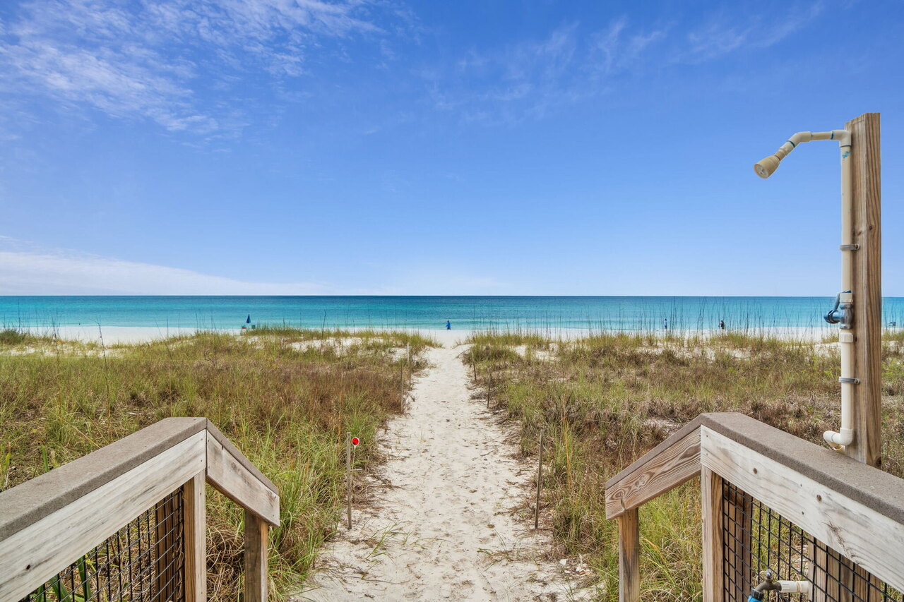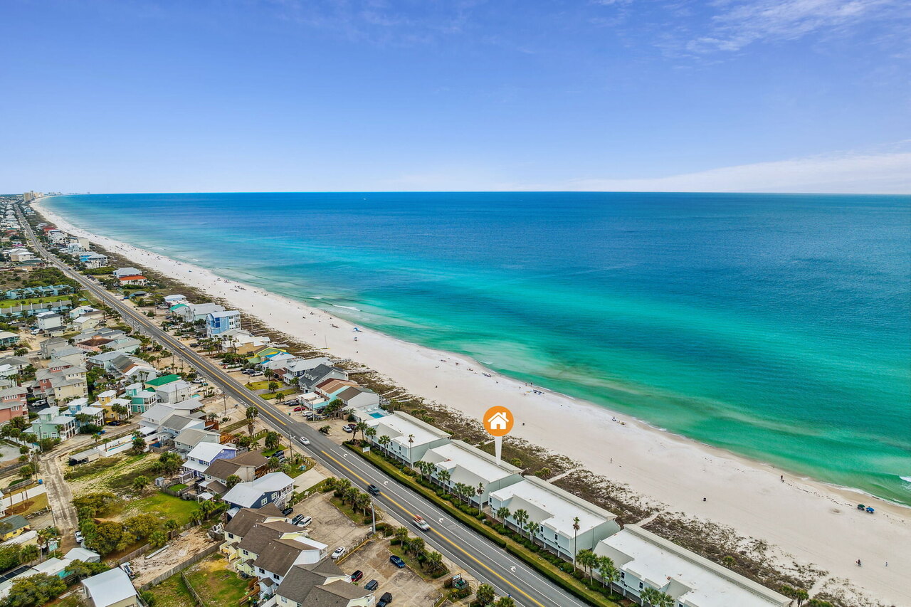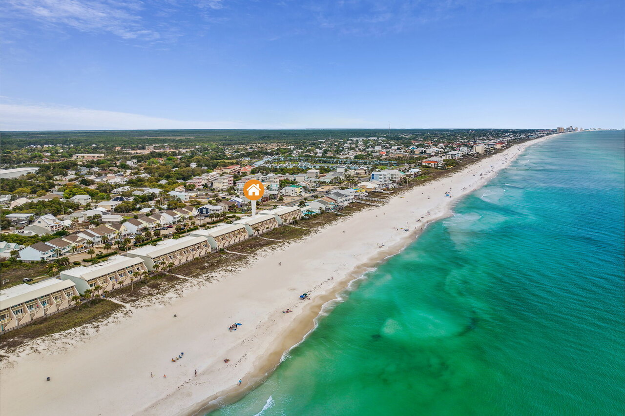 Spectacular sunsets from this Shores Townhome, which has been recently updated, and is perfectly positioned close to the pool and parking! It is beachfront on the quiet WEST-END of Panama City Beach. . Each room in the home has been decorated with the perfect paradise vacation in mind! This 2 bedroom, 2 bathroom PLUS bonus room, that is perfect for kids, sleeps 12 comfortably. It is directly on the Gulf of Mexico—enjoy breathtaking views from one of the two balcony patios. Located right on the sugar white sands of Panama City Beach, this is the ideal property for your next beach vacation. Located within a quarter mile of Publix and CVS, a 2 mile ride to Rosemary Beach and 30a, and a quick 5 minute drive to Pier Park, where you can find shopping, restaurants and bars, a 16 theater cinema, and an amusement park for children.You will fall in love with this home, beach access, amenities, and ideal location without the incredibly high rental costs. Don’t wait, book now! SLEEPING ARRANGEMENTS (SLEEPS 12) • Master Suite #1: 2 Queen Beds, Gulf Views, Reading area, Private Balcony, Water Closet and Private Bath with double sinks, • Guest Bedroom #2: 2 Full Beds • Guest Bedroom #3: Full over Full bunk PROPERTY HIGHLIGHTS • Beach Access: Directly on the Beach! • Free Hi-Speed WiFi • 55” Smart HDTV with cable, DVD/Blu-Ray system • Onsite Gulf Front Pool • Gas Grill • Large Patio Deck Overlooking the Gulf • Master Bedroom with Gulf Views and private balcony • Private 1 car Garage and additional parking spot in front of home • Outdoor Shower • Cooking Accessories • Coffee pot is Keurig • Washer/Dryer • Beach toys available for complimentary use by guests • Board Games and Beach Reads for complimentary use by guests ABOUT LOCATION • This is a pet-free and smoke-free rental. • Conveniently located close to shopping, dining, and entertainment! • Quiet and family friendly West End location • 2 Miles to 30a Rosemary Beach • 6 Miles to Pier Park • 6.8 Miles to Gulf World • 5.7 Miles to Frank Brown Park • 16 miles to the Panama City Beach – NW FL Beaches International Airport Singles under the age of twenty-five (25) are prohibited from booking unless accompanied by a parent or legal guardian. For all family groups, married couples and responsible adults over the age of 25, proof of age is required. There may be additional restrictions regarding the number of people that may accompany a parent or legal guardian. Age and identity will be verified prior to check-in.