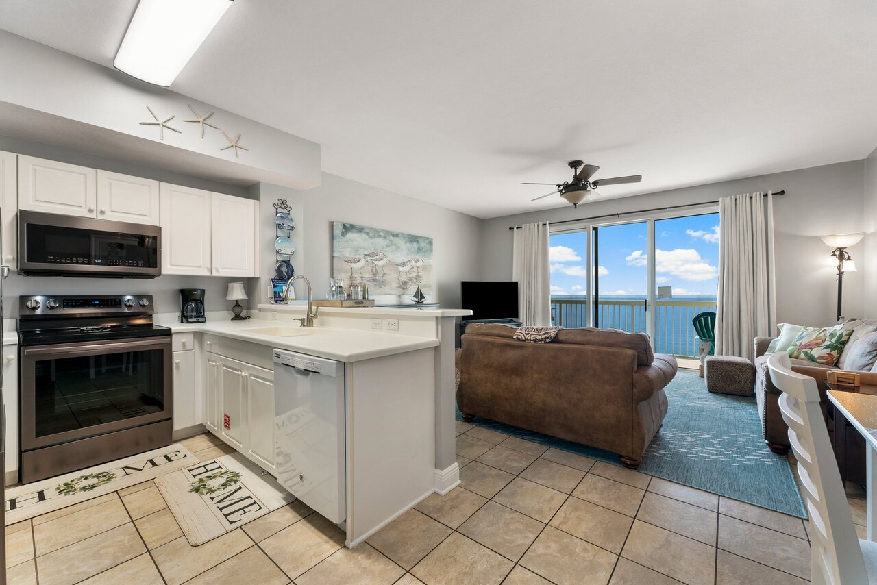 Celadon Beach Resort 2307D has everything a family needs to make the most of their beachfront vacation! This cheery 1/2, King Bedroom with Hall Bunks and Sleeper Sofa sleeps 6. Fully outfitted compact kitchenette and spacious living area provide the perfect perch for your beach vacation! Parking is $45 per vehicle. Freshly painted with new decor in 2022. *King Master with TV and private bath, stand alone shower *Hallway Twin Bunks *Queen Sleeper in Living Area *Hall Bath with Tub/Shower Combo *Dining area for 6 and 3 Bar stools *Outfitted Kitchenette *Fully Private Washer/Dryer *Spacious, Furnished Balcony Best of all are the many Celedon Resort amenities, including indoor and outdoor swimming pools, two outdoor hot tubs, a kiddie pool, an exercise room, a sauna, and a steam room. There’s also a wonderful picnic area near the beach with two stainless steel barbecue grills. Located on the West end of Panama City Beach, just 5 minutes from Pier Park and 15 minutes to 30A, when you talk "location," Celedon is the BEST!