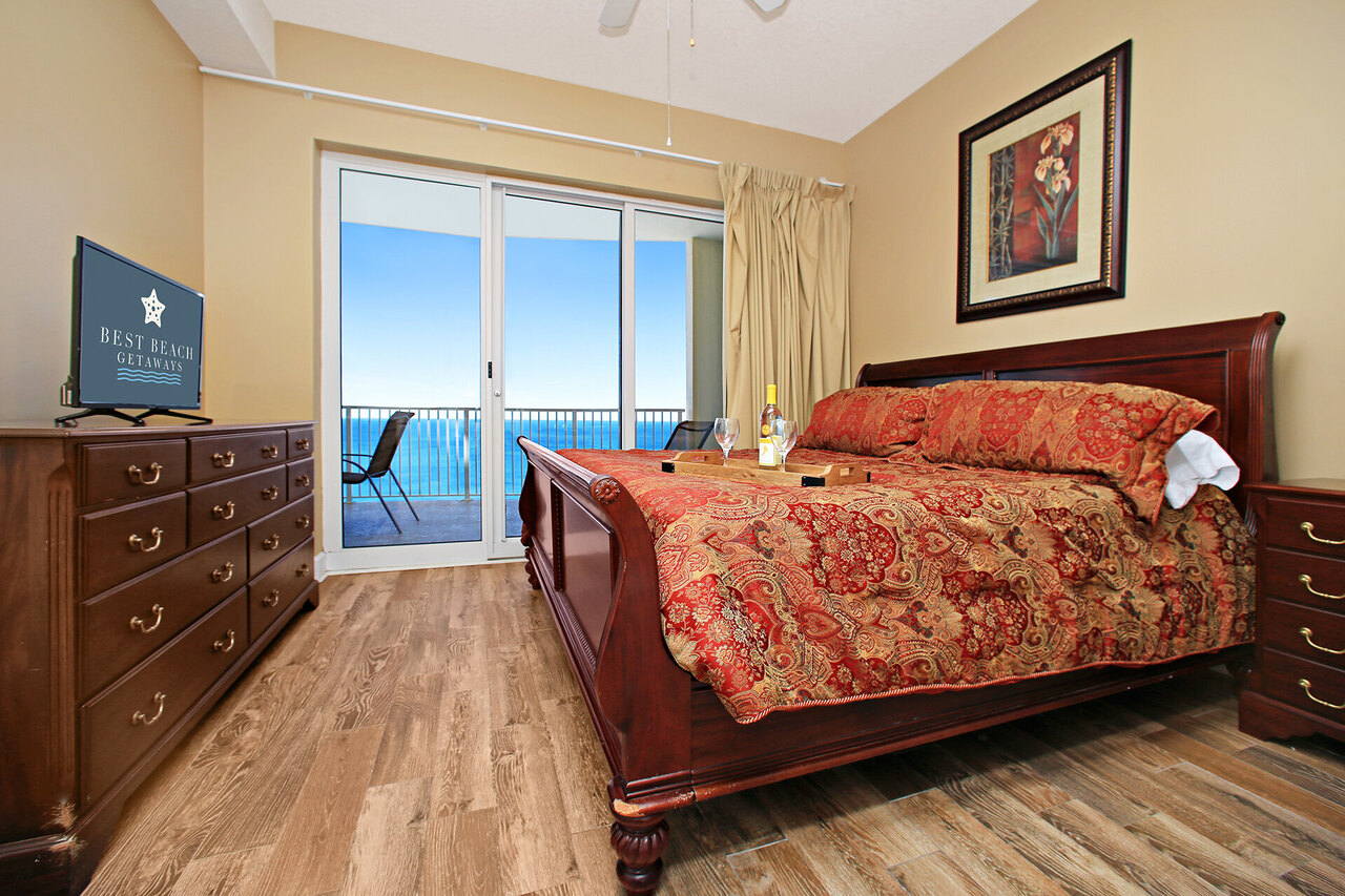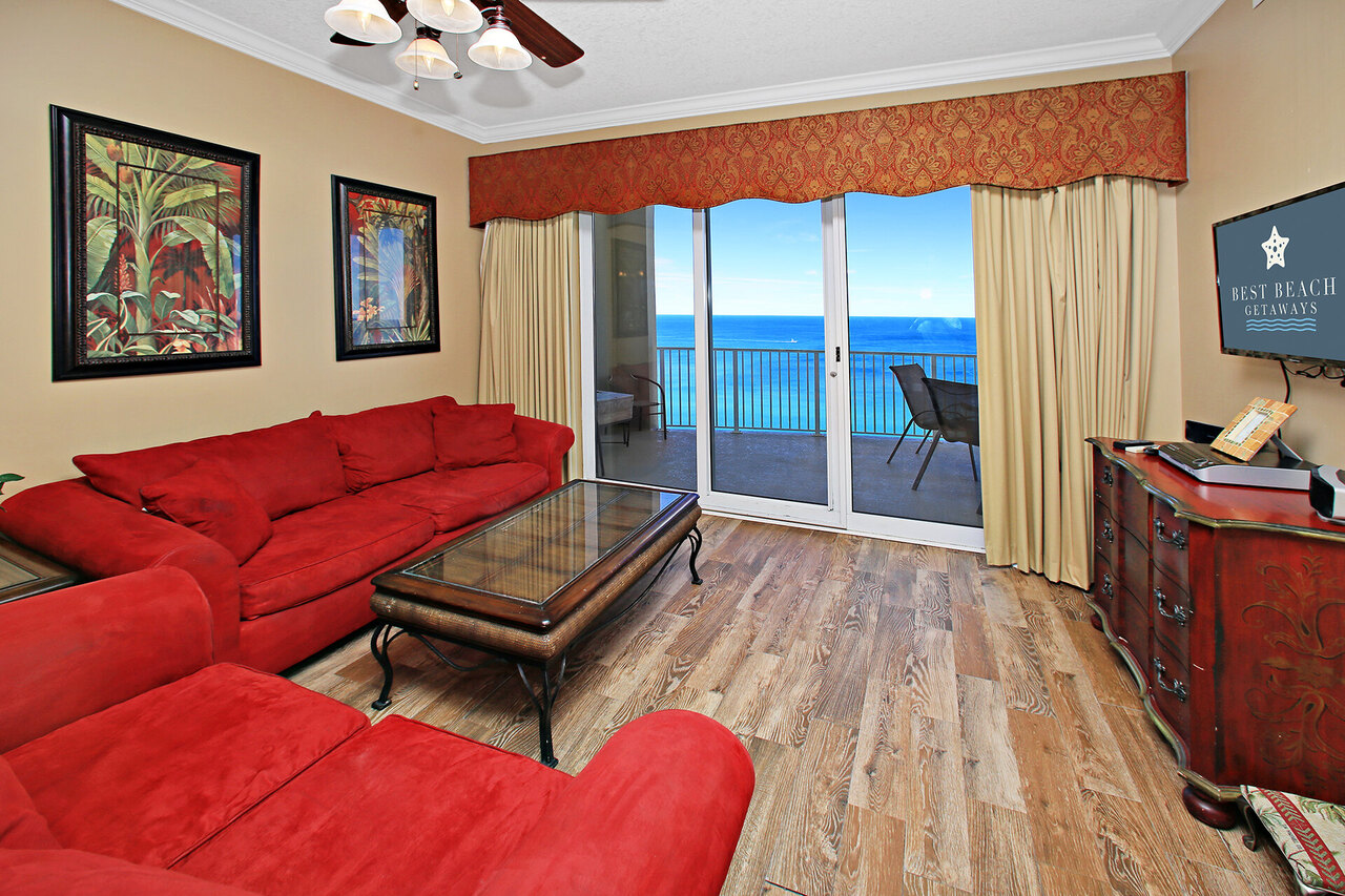 Welcome to Ocean Villa 2006! If relaxing with stunning views of the beach and the sound of the surf are what you’re looking forward to, then this is the condo for you! This beachfront condo is located on the 20th floor of Ocean Villa and has unobstructed 180 degree views of the world renowned Emerald Coast. With an oversized balcony, you can enjoy your morning coffee with a view, as well as evening drinks, while you take in gorgeous sunsets or watch the storms roll in. I’ve even seen end-to-end double rainbows from this vantage point! There are lots of kid-friendly attractions and restaurants nearby, or, head down to one of the three pools, Jacuzzi, or the beach, via a private gate with direct beach access. The unit is spacious, with two bedrooms, each with en suite full bathrooms, and a sleeper sofa – the condo sleeps a total of six. Features of the Condo: • Electronic lock for easy access on arrival • 1100+ square feet of living space • Large 200+ square feet of balcony • Queen sleeper sofa • TVs in living room and both bedrooms • Fully equipped kitchen with toaster, blender, coffeemaker, dishwasher, and microwave • Master bedroom king bed with private balcony access • 2 full bathrooms including tub/shower combo and hairdryers • Guest bedroom has a queen bed • WiFi and cable TV • 23-story building • Convenient covered basement parking and covered overflow parking across the street • 300+ feet of white sand private beach frontage with easy gated access • 2 outdoor pools, 1 indoor pool, Jacuzzi • Barbeque grill • Gulf view fitness center with treadmills • Luggage carts for convenience You must be at least 25 years of age to rent this property. During Spring Break , the minimum acceptable ratio is one (1) person 25 years of age for every two (2) persons under 25 years of age.