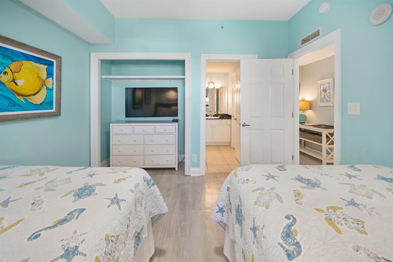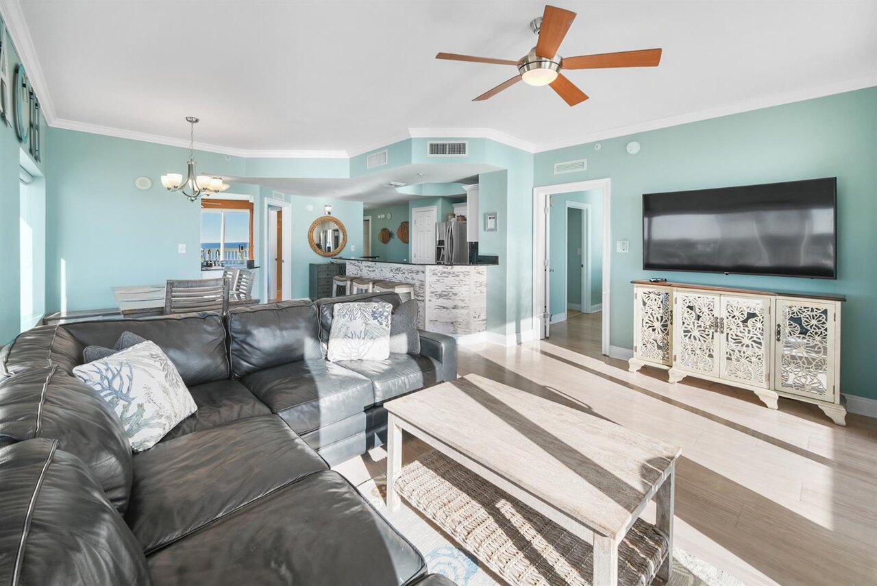 Welcome to Calypso 709 West – Your Perfect Beach Getaway! Experience the ultimate beach getaway at Calypso 709 West, a completely renovated 3-bedroom, 3-bath condo on the 7th floor of Panama City Beach's premier beachfront resort. This spacious residence is the perfect retreat for families or groups, comfortably sleeping up to 8 guests. The expansive balcony offers breathtaking views of the world-famous Gulf of Mexico, we recommend bringing your binoculars for a chance to spot playful dolphins while enjoying your morning coffee. Stroll along the sandy beach during the day and enjoy nightly sunsets from your balcony. Whether you're here for a weekend or an extended stay, this thoughtfully furnished condo makes it feel like your home away from home. Located adjacent to Pier Park, you’ll have easy access to premier shopping, dining, and entertainment only minutes away! Key Features: • Spacious Living: Over 1,200 square feet of thoughtfully designed living space, comfortably accommodating up to 8 guests. With large rooms and an open layout, everyone will have plenty of space to spread out and relax. • Stunning Gulf Views: Enjoy panoramic views of one of the world’s most beautiful beaches right from the balcony. Start your mornings with a cup of coffee and watch dolphins playing in the gulf—bring your binoculars! • Seamless Arrival: No keys to worry about! Our electronic entry system and carefree check-in process make it easy to get settled and start your vacation right away. • Fully Equipped Kitchen: The kitchen features granite countertops, stainless steel double sink, and essential appliances including a microwave, toaster oven, blender, and coffeemaker. It's ready for you to prepare meals or snacks to enjoy during your stay. • Comfort & Entertainment: The living room is perfect for unwinding with a large leather sofa that seats 5 comfortably. Watch your favorite shows on the 65” wall-mounted flat-screen TV. The dining area comfortably seats 6 for family meals or game nights. • Master Suite: Relax in the king-size bed of the master bedroom while enjoying gulf views and direct access to the balcony. It also includes a 50” flat-screen TV and an en-suite bathroom with a garden tub, separate shower, and double vanity. • Guest Rooms: The second bedroom also has a king-size bed and a 42” flat-screen TV. The third bedroom offers 2 double beds with a 50” flat-screen TV—perfect for the kids or additional guests. • Modern Conveniences: Wireless internet is available throughout the residence, and you’ll find a full-size washer/dryer conveniently located in the unit. • Beach Service Included – two beach chairs are included with your reservation (in season). Contact the folks at beachfront beach service desk to claim your chairs during your stay. • VIP Underground Parking space: Included with your reservation for one vehicle. Enjoy easy access to the elevator, taking you directly up to the 7th floor. Additional parking is available in the parking garage across the street. ________________________________________ Why Choose Calypso 709 West? For its impeccable location, stunning views, and excellent amenities! This well-maintained building offers everything you need for a perfect beach vacation: from easy access to Pier Park to its array of resort-style facilities. We're confident you'll find it to be a place where unforgettable family memories are made. To secure your dates and book your stay, contact our rental manager today. We encourage you to plan early – this popular condo fills up quickly ________________________________________ More About Calypso Resort: Calypso is a superbly maintained, 23-story condominium resort offering a variety of on-site amenities, including: • 500+ feet of white sand private beach with easy access • Two sparkling gulf-front pools and sundecks (heated seasonally) • Beachfront fire pits for ultimate nighttime relaxation • Newly updated fitness center with treadmills, weights, and bikes • Tiki Bar & Grill (open seasonally) for poolside drinks and meals • Onsite beach and sports rentals (jet skis, banana boat rides, and parasailing in season) • Free Wi-Fi in all public spaces • Various vending machines for off hours convenience With everything you need right at your fingertips, Calypso ensures you and your family will have a wonderful beach vacation experience. ________________________________________ Important Information: • You must be at least 25 years of age to rent this property. • During Spring Break, the minimum acceptable ratio is one (1) person over 25 years of age for every two (2) persons under 25. • Wristbands are provided and required to be worn when on the Calypso property. • Parking registration is required ($60 per vehicle) and can be obtained for up to two cars. • No smoking or pets are allowed. ________________________________________ Book Your Stay Today! Ready to make your beach vacation dreams come true? Calypso 709 West offers the perfect blend of comfort, convenience, and beautiful surroundings for a memorable getaway. To secure your dates and book your stay, contact our rental manager today. We encourage you to plan early – this popular condo fills up quickly