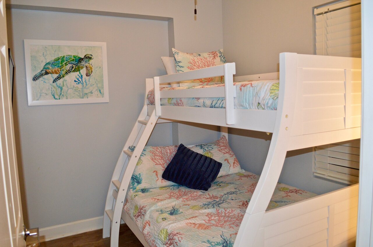Welcome to Sunrise Beach #1506 – your cozy beach retreat! Our beachfront condo in Panama City Beach was outfitted with great care to be a home away from home, for us as well as our treasured guests. We selected Sunrise Beach unit 1506 because it is very spacious, offers incredible views of the beach and Gulf of Mexico and has the best pools on the beach! This two-bedroom, two-bath beach home has sleeping accommodations for 6. It boasts a spacious living area with a queen sleeper sofa, a Gulf-front master with a king bed, and a second room with a twin-over-full size bunk bed. The oversized balcony is furnished with comfortable deep seating to enjoy the spectacular sunsets and a dining table for morning coffee while the dolphins and stingrays play. Since we spend time here ourselves, we’ve made sure that this condo is decorated and equipped to create the feel of home at the beach, for maximum comfort as a peaceful respite and cozy atmosphere for making family memories. We hope you love being here as much as we do! Starting 8/18 until mid October 2025, the resort will be doing stucco work on all balconies, elevator modernization (2 elevators will be shut down while the others are up and running) until 5/18/2026, and during the early and late fall they will be working on the garage, which will have some noise and some partial closing of the garage area. Balconies will be closed in the 06 stacks from 9/19-10/17 (mostly being done 10/6-10/17) during weekdays from 9 am to 5 pm. Guests will not have access to the balcony during these hours. The East pool will be closed 10/13-10/31 West pool will be open for guests to use during this time. More features of our beach home include: • Carefree check-in with digital combination lock, so you can go straight to the front door of this residence upon arrival • Over 850 square feet of living space on the 15th floor • Over 200 square feet balcony with deep seating comfortable furniture and dining table • Living room with QUEEN sleeper sofa and flat screen TV • Fully equipped kitchen includes brand new appliances and toaster, Ninja blender, both Keurig and Mr. Coffee coffeemakers, and crock pot • Master bedroom has KING bed, flat screen TV, and Gulf view with balcony access • Master bath with separate shower, soaker tub and dual sinks • Separate bunk room with a TWIN over FULL beds and a flat screen TV • Free wireless internet access • Full-size stackable washer & dryer conveniently located in the condo Sunrise Beach unit 1506 offers a quieter location on the west end of the beach, away from the crowds, yet is still close to all the attractions Panama City Beach offers. The property is very clean and well kept, offers a great gym with cardio and weight lifting equipment, and is close to Pier Park. Plus, Moe’s BBQ is right across the street and favorite beachfront restaurants Sharkey’s, Hang Five and Runaway Island Grill are practically next door! We hope you’ll experience Sunrise Beach 1506 as your beach home away from home, where you and your family can enjoy a truly memorable beach vacation! MORE ABOUT SUNRISE BEACH RESORT PROPERTY... Sunrise Beach is an oceanfront, family-friendly resort that’s the perfect combination of convenience and comfort. Located near Gulf World Marine Park and just a short drive to Pier Park and Frank Brown Sports Complex, Sunrise Beach Condominiums gives guests one of the best oceanfront values in PCB, Florida. Amenities include a fitness facility, two pools, two Jacuzzis and a water mushroom play area, covered guest parking, and barbecue grills. Bring your family and treat yourselves to a wonderful vacation in Panama City Beach! You must be at least 25 years of age to rent this property. During Spring Break, the minimum acceptable ratio is one (1) person 25 years of age for every two (2) persons under 25 years of age. Please note: Resort charges 50.00 per vehicle registration fee.