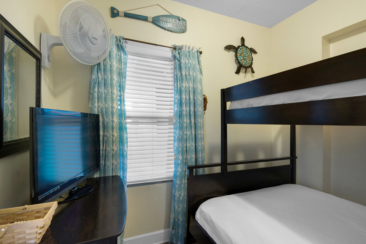 Welcome to "Prissy's Hideaway" #2407 – your highrise beach retreat! Simply breathtaking! One thing you will notice right away is that the balcony views of the world’s most beautiful beaches are spectacular! Both the living area and master bedroom overlook the emerald green waters and sugar white sand of the Gulf of Mexico. If you are looking for a beachfront vacation condo with all the extras and luxuries of home, this is the one for you! As a bonus, we’ve purchased beach service for our guests that’s available from March 1st through October 31st. This is why we selected Sunrise Beach 2407… because of the incredible views plus its amazing 24th floor location! This two bedroom and two bath beach residence has a King in the master, a Twin Over Full in the second and a Queen sleeper sofa that can accommodate 6 guests. The oversized balcony is furnished with plenty of seating to enjoy the spectacular sunrises and sunsets plus is the perfect spot for morning coffee while watching the dolphins and stingrays play in the surf. We love designing our homes to invoke the perfect calm, peace, tranquility and FUN feelings you expect from your vacation at the beach! We hope you love being here as much as we do! Starting 8/18 until mid October 2025, the resort will be doing stucco work on all balconies, elevator modernization (2 elevators will be shut down while the others are up and running) until 5/18/2026, and during the early and late fall they will be working on the garage, which will have some noise and some partial closing of the garage area. Balconies will be closed in the 07 stacks from 10/6-10/17 during weekdays from 9 am to 5 pm. Guests will not have access to the balcony during these hours. The East pool will be closed 10/13-10/31. West pool will be open for guests to use during this time. More features of our beach home include: * Beach service included during season • Carefree check-in so you can go right to this residence once you’re in town • Over 920 Square Feet of Living Space on the 24th floor • Large 200+ Square Feet of Balcony with plenty of seating • The Living room comfortably seats 4 • Living Room includes a 55” 4K SMART TV • Dining Area seats 4 around a beautiful dining table plus 3 bar stools at the kitchen counter • Fully equipped Kitchen includes microwave, toaster, blender, coffeemaker, crockpot • Master Bedroom has KING bed and a 40 SMART TV and a gulf view with balcony access • Master Bath has a separate tub and shower and dual sinks • The 2nd bedroom is equipped with a Twin Over Full Bunk and a 32” TV • The second bath has a combination tub/shower • There’s wireless internet access throughout the unit • There is a full-size washer & dryer conveniently located in the unit We picked Sunrise Beach 2407 (#SunriseontheGulf…tag us!) because it offers a quieter location that is still close to all the fun and amazing attractions Panama City Beach offers. Moe’s BBQ is right across the street and favorite beachfront restaurants Hang Five, Runaway Island Grill and Sharkey’s are practically next door! We hope you’ll experience Sunrise Beach 2407 as your beach home away from home, where you and your family can enjoy a truly memorable beach vacation. If you want to make sure your family has the beach vacation all of you deserve you can make your reservation online. But since it's so popular don’t wait too long or your dates will be gone. MORE ABOUT SUNRISE BEACH Sunrise Beach is an oceanfront, kid-friendly resort that’s the perfect combination of convenience and comfort. Located near Gulf World Marine Park and just a short drive to Pier Park and Frank Brown Sports Complex, Sunrise Beach Condominiums gives guests one of the best oceanfront values in PCB, Florida. Recreational amenities include a fitness facility, two pools, two jacuzzis and a water mushroom play area. Additional property amenities include Gulf Side covered guest parking (no street crossovers), barbecue grills. Bring your family and treat yourselves to a wonderful vacation in Panama City Beach. You must be at least 25 years of age to rent this property. During Spring Break , the minimum acceptable ratio is one (1) person 25 years of age for every two (2) persons under 25 years of age. Please note: Resort charges 50.00 per vehicle registration fee.