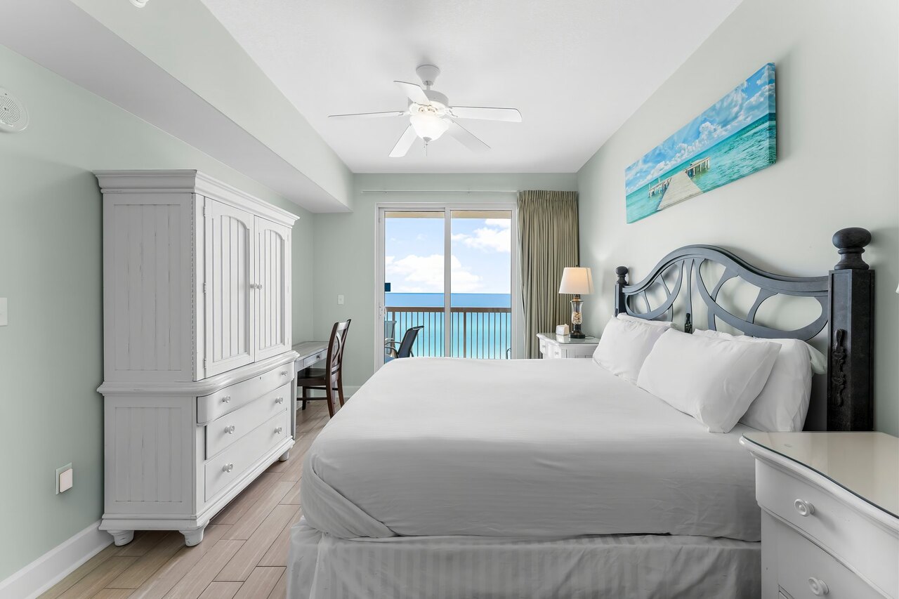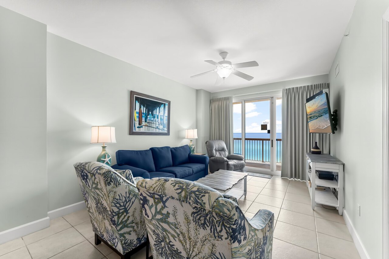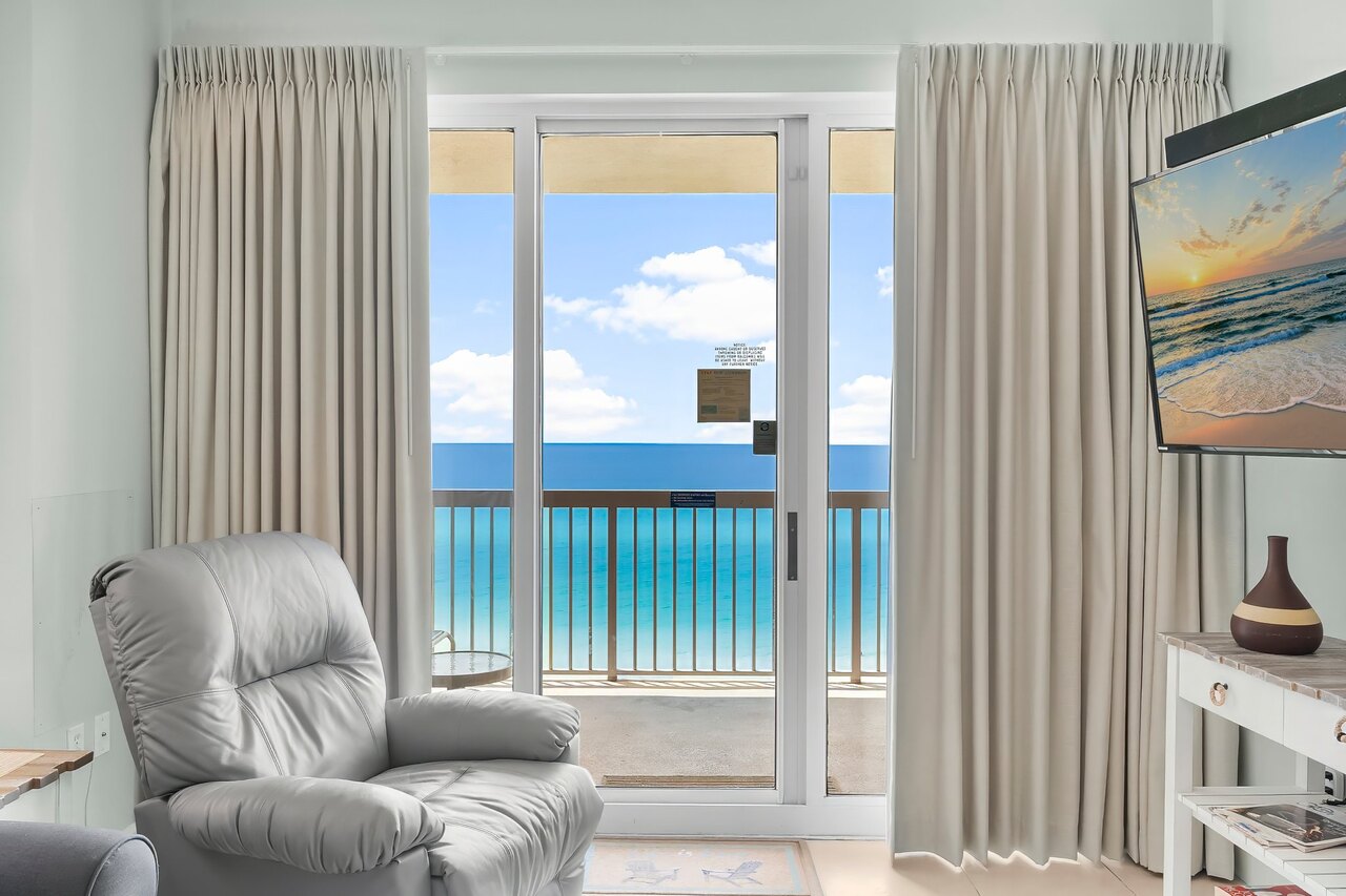 Welcome to Sunrise Beach 810! We purchased this spacious Panama City Beach vacation rental condo a few years ago so that we could have a home at the beach that we could share with our family and others. We selected Unit 810 because it is on a lower floor, is very spacious and offers incredible views of the beach. Our condo is a two bedroom two bath beach residence with a separate bunk room that sleeps up to 8 comfortably because all the rooms and the living area are quite large. One thing you’ll notice right away is that the balcony views of the world’s most beautiful beaches are spectacular. In the morning, we like to bring our binoculars along when we come so that we can enjoy our morning coffee while we watch the dolphins playing in the gulf. Since we spend time here ourselves, we’ve made this that this condo is decorated for maximum comfort. We wanted to create the feel of a home at the beach. For us and our guests. We’ve even included free beach service from March through October! We hope you’ll have the opportunity to enjoy some of the unique features of this wonderful beach environment: Starting 8/18 until mid October 2025, the resort will be doing stucco work on all balconies, elevator modernization (2 elevators will be shut down while the others are up and running) until 5/18/2026, and during the early and late fall they will be working on the garage, which will have some noise and some partial closing of the garage area. Balconies will be closed in the 07-11 stacks from 9/9-9/18 during weekdays from 9 am to 5 pm. Guests will not have access to the balcony during these hours. Here are some more interesting features of our beach residence: -Free Beach Service from March through October -Carefree check-in so you can go right to this residence once you’re in town -Over 1200 Square Feet of Living Space on the 8th floor -Large 200+ Square Feet of Balcony with 2 reclining lounge chairs, table, and 4 standard chairs -The Living room comfortably seats 6 with Queen Sleeper Sofa -Living Room includes a 55” Flat screen TV -Dining Area seats 6 around a beautiful dining table -Fully equipped gourmet Kitchen includes microwave, toaster oven, blender, coffeemaker -Master Bedroom has KING bed and a 32” FLAT SCREEN TV and a gulf view with balcony access --Master Bath has separate garden Jacuzzi tub and shower -2nd bedroom has a King bed and a FLAT SCREEN TV -The 2nd bath has a combination tub/shower -Bunk room with twin over full bunk bed and a 24” FLAT SCREEN TV -There's wireless internet access throughout the unit -There is a full-size washer & dryer in a separate laundry room conveniently located in the unit - Sunrise Beach Resort is a Non-smoking Resort - Smoking is prohibited in elevators, lobbies, poll deck, all balconies and walkways. - Smoking is only allowed in specific designated areas. - Unit 810 is strictly non-smoking, smoking is prohibited. We picked Sunrise Beach 810 because it offers us quieter location that is still close to all the attractions Panama City Beach offers. We think you’ll agree that Sunrise Beach 810 can be your beach home away from home, where you and your family to enjoy a truly memorable beach vacation. If you want to make sure your family has the beach vacation you all deserve, give our rental manager a call or an email as soon as you can. You must be at least 30 years of age to rent this property. During Spring Break , the minimum acceptable ratio is one (1) person 30 years of age for every two (2) persons under 30 years of age. Please note: Resort charges 50.00 per vehicle registration fee.