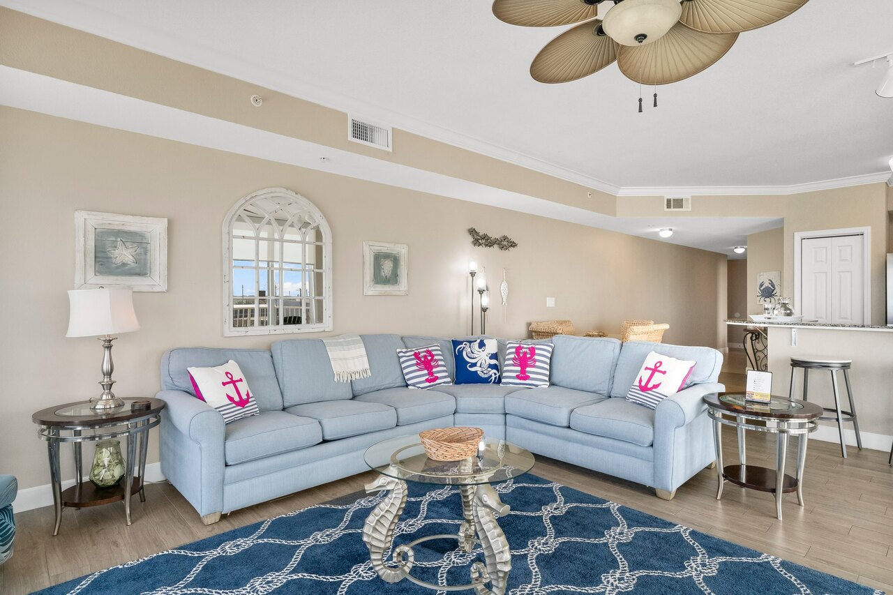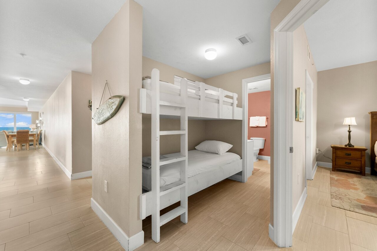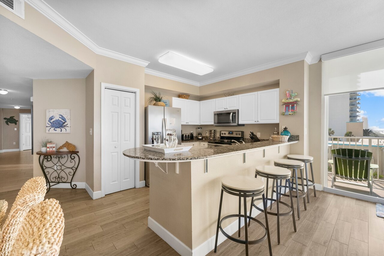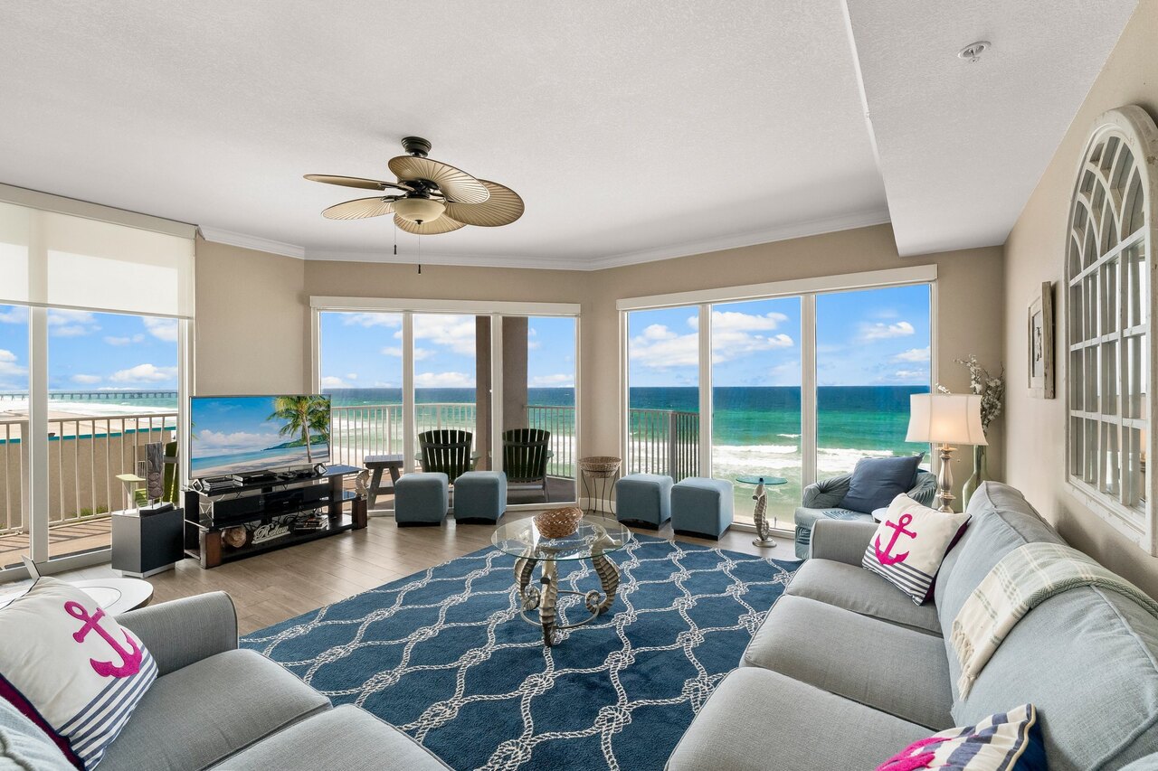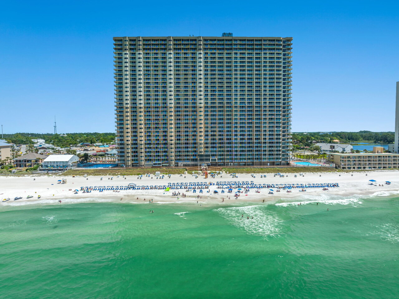 Tidewater Beach Resort is located on 636 feet of beautiful white sand gulf beaches, housing 570 luxury gulf front units. A first class resort condominium featuring an impressive array of amenities for your enjoyment. Two huge lagoon pools, indoor pool, a 4300 square foot fitness center with "health bar" and (2)spas, 5000 square foot conference center, movie/media center, movie theater, game room,seven elevators and much, much more are just some of the features planned for this building. All of this can be your home away from home. Bathrooms and kitchen fully renovated in 2025, also new flooring in bedrooms and new paint. This 3rd floor corner unit definitely has the wow! factor. With floor to ceiling glass surrounding the entire living and dining area, you'll enjoy views of the gulf that are just as spectacular from the inside living area as they are outside from the balcony. Living arrangements are plush, yet extremely functional. You will absolutely love your stay here at this unit. Beach service included during season Pier Park located just 1/3 mile away is a shopping and dining experience. It essentially has all the stores you and the kids love to shop at. Think of any store or brand, it is probably there at Pier Park. It also features great restaurants and entertainment establishments. Please note: all guests staying at Tidewater will be required to register and pay a $60 plus tax Association Registration Fee. Singles under the age of twenty-five (25) are prohibited from booking unless accompanied by a parent or legal guardian. For all family groups, married couples and responsible adults over the age of 25, proof of age is required. There may be additional restrictions regarding the number of people that may accompany a parent or legal guardian. Age and identity will be verified prior to check-in