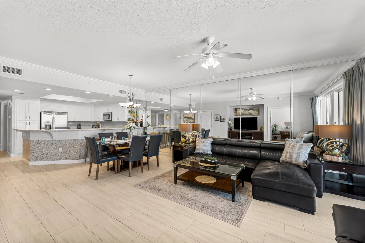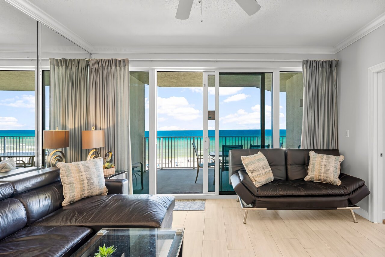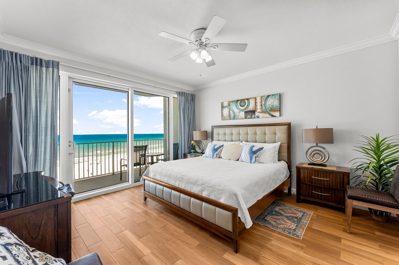 Welcome to Boardwalk 511 . The views from this 5th floor luxury vacation rental are spectacular from this corner location! It’s as close to perfect as you can get. It’s just the best spot for endless panoramic beautiful beach and gulf views. Bring your binoculars and watch dolphins and the stingrays playing in the morning and get ready to enjoy the magnificent sunsets in the evening from our extra-large balcony. You’ll find the interior décor just as exciting as the gulf views. Our owners chosen décor that make this the perfect family vacation spot. In fact, this unit is perfect for two families who want to make their luxury vacation more affordable. You’ll also find many attractive features in our spacious beach residence: • Carefree check in so that you go right to this home (except during Spring Break) • Electronic lock so you don’t have to worry about carrying keys • Extra large balcony with incredible beach and gulf views! Enough room so everyone in the condo can be out there! • Located on the 5th floor. With great beach and gulf views. • Spacious living room with a 55” SMART TV with BluRay DVD and a leather queen sleeper sofa with gulf views • Upscale dining area with seating for six, plus a kitchen bar that seats 4 • Fully equipped Kitchen including KITCHEN including blender, coffeemaker, toaster and more! • Gulf front Master Suite has KING bed, a 47” SMART TV with BluRay DVD, walk-in closet and access to wrap around balcony • You’ll also find a sofa in the sitting area in the Master Suite • Master Suite has direct view of breathtaking sunsets • Master Bath has a double sink vanity, walk in shower and a garden tub • 2nd Master is beautifully appointed and also has a KING bed and a 46” SMART TV and Blu Ray DVD. This suite also has two full size futons for extra sleeper space • The 2nd bath has a garden tub and walk in shower • The 3rd Bedroom also features a KING bed, a 40” SMART TV and BluRay DVD • The 3rd Bath has a combination tub/shower • The 4th Bedroom is a kid-friendly bunk suite with twin bunks and a 32” SMART TV & BluRay DVD • There is WI-FI and XFINITY throughout the residence • There is a FULL size washer and dryer room If you are looking for the beach rental with the best views of the world's most beautiful beaches and plenty of space for your entire family, Boardwalk 511 is just the place to enjoy a truly memorable beach vacation. This condo is so popular, it rents most of the year. ALSO CHECK OUT OUR OTHER UNIT BOARDWALK 2011! Go to WWW.VRBO.com/799987! ABOUT BOARDWALK What makes staying at the Boardwalk Beach Resort special? Try the area’s largest private beach, a “Splash Zone” with interactive toys for kids, a beachfront pool and hot tub, a beachfront bar and grill, and more! Boardwalk Beach Resort is a 22-story gulf-front condominium that overlooks the Gulf of Mexico and sparkles like a diamond on Panama City Beach’s emerald coast. This upscale resort is just minutes from shopping centers, iconic restaurants like Pineapple Willy’s and the super clubs. It’s also right across the street from Signal Hill County Club, great golf is just a nine iron away! If you want the best vacation experience, experience Boardwalk. WHAT MAKES PANAMA CITY BEACH SPECIAL Panama City Beach is best known for its 27-mile stretch of sugar-white sand beaches and clear, emerald waters of the Gulf of Mexico. There are also boatloads of attractions from pirate ships and animal parks to go-carts and giant slingshots, See oddities at Ripley’s, float away at Shipwreck Island Water Park, or swim with the dolphins at Gulf World. This brightly colored, open-air gem features national chain stores and local favorites. You must be at least 25 years of age to rent this property. During Spring Break , the minimum acceptable ratio is one (1) person 25 years of age for every two (2) persons under 25 years of age.