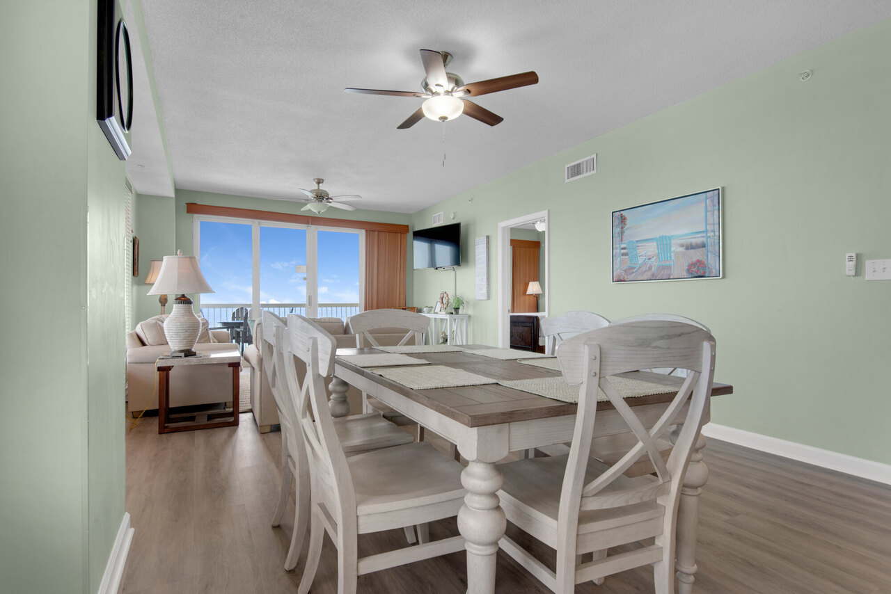 Welcome to the newly remodeled Seychelles 901 Our condo is a three-bedroom two bath beach residence great for a large party because all the rooms and the living area are quite large. You’ll find the wraparound balcony views of the world’s most beautiful beaches to be wonderful. We like to bring our binoculars along when we come so that we watch the dolphins playing in the gulf while we’re enjoying our coffee and the morning sunshine. We’ve made sure that our condo is decorated for maximum comfort. It has a really nice look that creates the feel of home at the beach. Beach service also included during season!! From 8/18/25-2/9/26 the resort will be painting balconies during these dates so there will be workers present and scaffolding up on affected balconies. LIMITED BALCONY USE: From 9/23-10-24, guests will not have access to balcony between the hours of 8 am - 5 pm Monday through Friday. Balcony furniture will be stored inside the condo during these dates as well per HOA instructions. We also wanted to make this a home away from home for us and for our guests. In fact, we’ve purchased beach service so that our guests can enjoy the beach without having to lug chairs and an umbrella to the beach. Seychelles is located on Thomas Drive which makes it close to lots of the family activities available in Panama City Beach, but it’s far enough away that you won’t have to deal with lots of traffic. We hope you’ll have the opportunity to enjoy some of the unique features of this wonderful beach environment. Here are some more interesting features of our beach residence: • Parking for ONE vehicle during peak times of the year. • Electronic KABA lock so no keys to worry about • Seasonal Beach service included • Carefree check-in so you can go right to this residence once you’re in town • Over 1500 Square Feet of Living Space on the apartment sofas and a comfortable chair • 200+ Square Feet of Wraparound Balcony • The Living room comfortably seats 7 with a leather full sleeper sofa, a smaller sofa and two chairs. • Living Room includes a 50” SMART TV • There is a 2nd living area nook with 2 swivel chairs • Dining Area seats 6 with additional seating at the kitchen bar • Kitchen has lots of counter space and stainless steel appliances • Fully equipped Kitchen includes microwave, toaster, blender, coffeemaker • Master Bedroom has KING bed and a 40” SMART TV, and gulf view with balcony access • Master Bath has a garden tub with separate shower and double vanity • 2nd bedroom has a QUEEN bed and a 43” SMART TV • The 2nd bath has a walk-in shower • The 3rd Bedroom has a QUEEN bed and a 32” SMART TV • There is complimentary wireless internet access throughout the residence • There is a washer/dryer conveniently located in the unit We picked Seychelles 901 because it is a well-cared for building that offers great views and a great location with really nice amenities. We think you’ll agree that our Seychelles vacation rental can be your beach home away from home, where you and your family can enjoy a truly memorable beach vacation. If you want to make sure your family has the beach vacation you all deserve, give our rental manager a call as soon as you can because our Seychelles vacation rental books up quickly. More about Seychelles Beach Resort • Seychelles is a 22-story condominium resort building with a variety of very nice features: • 500+ feet of white sand private beach frontage with easy access • Two gulf side pools one heated seasonally with connecting hot tub • Seasonal beach service • Fitness center Seychelles offers you everything you need for a wonderful family vacation experience You must be at least 25 years of age to rent this property. During Spring Break, the minimum acceptable ratio is one (1) person 25 years of age for every two (2) persons under 25 years of age.