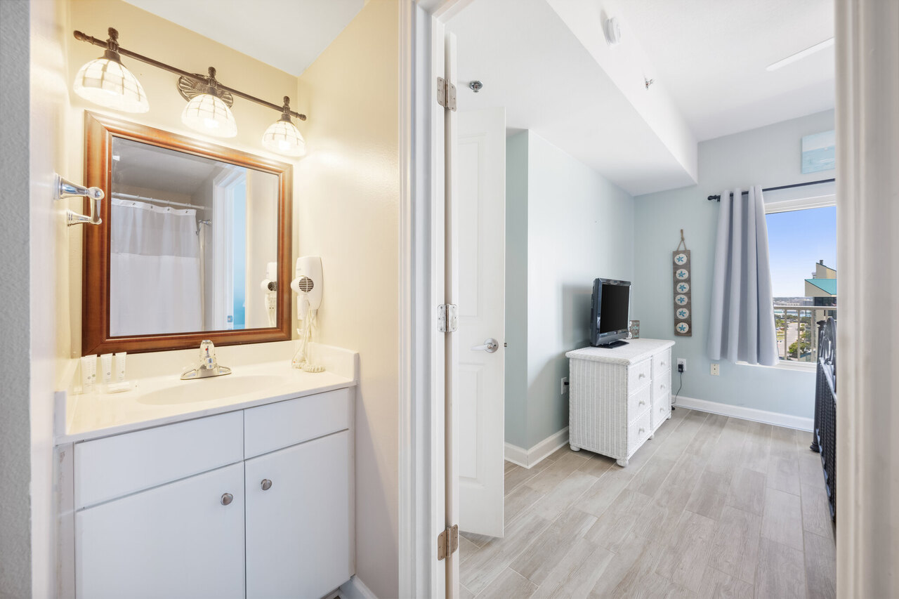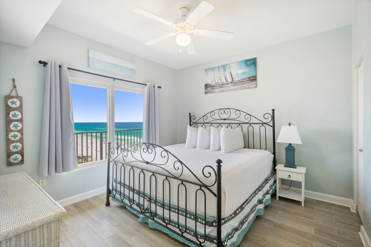 Welcome to Shores of Panama 1127! Let's start with the bedding arrangements: KING, a FULL and a QUEEN SLEEPER! That’s plenty of sleeping room for 6 and TWO BATHROOMS! If you are looking for the kind of vacation condo that’s perfect for the family and nicely appointed, this is the one for you. The owners have taken special care to make this Shores of Panama rental a place you'll want to come every year. Guests have to pay resort for a QR code which they will scan at front desk to get their parking packet. 1 bedroom units are allowed one parking pass. Cost is $81.00 But let’s talk about what makes this the perfect choice for you. Let’s start with the view! You step out on the balcony and you get a spectacular view from a large balcony with plenty of comfortable seating. Even a table for outdoor dining or playing games! It's just the right spot to enjoy you morning coffee. You’ll want to spend lots of time here. It’s big and comfortable. The living area has space to relax and catch a movie, with seating for 5. It’s elegant without being too formal. But that’s not why you’ll pick this condo. It’s got great views. Plain and simple. There’s 50” Flat Screen to enjoy, but, your eyes will wander to the beach every time. And there is a queen sofa sleeper for additional sleeping. The dining table has seating for 6, and there’s plenty of seating around the kitchen counter. The kitchen's got everything you need, whether you're grabbing a snack or whipping up a gourmet meal. Your MASTER SUITE has a huge king size bed and a view of the Gulf! Really luxurious bedding and a FLAT SCREEN TV. Step right out onto the balcony from here. The HALL ALCOVE features a full bed, a Smart TV, and a barn door for privacy. The LAUNDRY area’s located to make keeping everyone in clean clothes a breeze. Parking for only one vehicle Shores of Panama 1127 is your happy beach place. And it’s priced right for you too. Book today! INFORMATION ABOUT SHORES OF PANAMA Shores of Panama stands above all others with 23 stories of gulf front luxury accommodations offering unparalleled amenities. The moment you arrive, you'll know Shores of Panama is special. Before you hit the beach, it will be difficult to pass up Shores of Panama's magnificent pool deck and all the amenities this luxury spot offers: -13,966 sq. ft. gulf side lagoona style pool -Gulf side hot tub -Private beach access -Large heated indoor pool & hot tub -Covered on-site parking deck -Health center with fitness equipment -Two tiki bars serving lunch and dinner -Donut and coffee shop -Beach activities and rental services Shores of Panama is the perfect spot to get away and still be close to everything you need for a great vacation. You must be at least 25 years of age to rent this property. During Spring Break , the minimum acceptable ratio is one (1) person 25 years of age for every two (2) persons under 25 years of age.