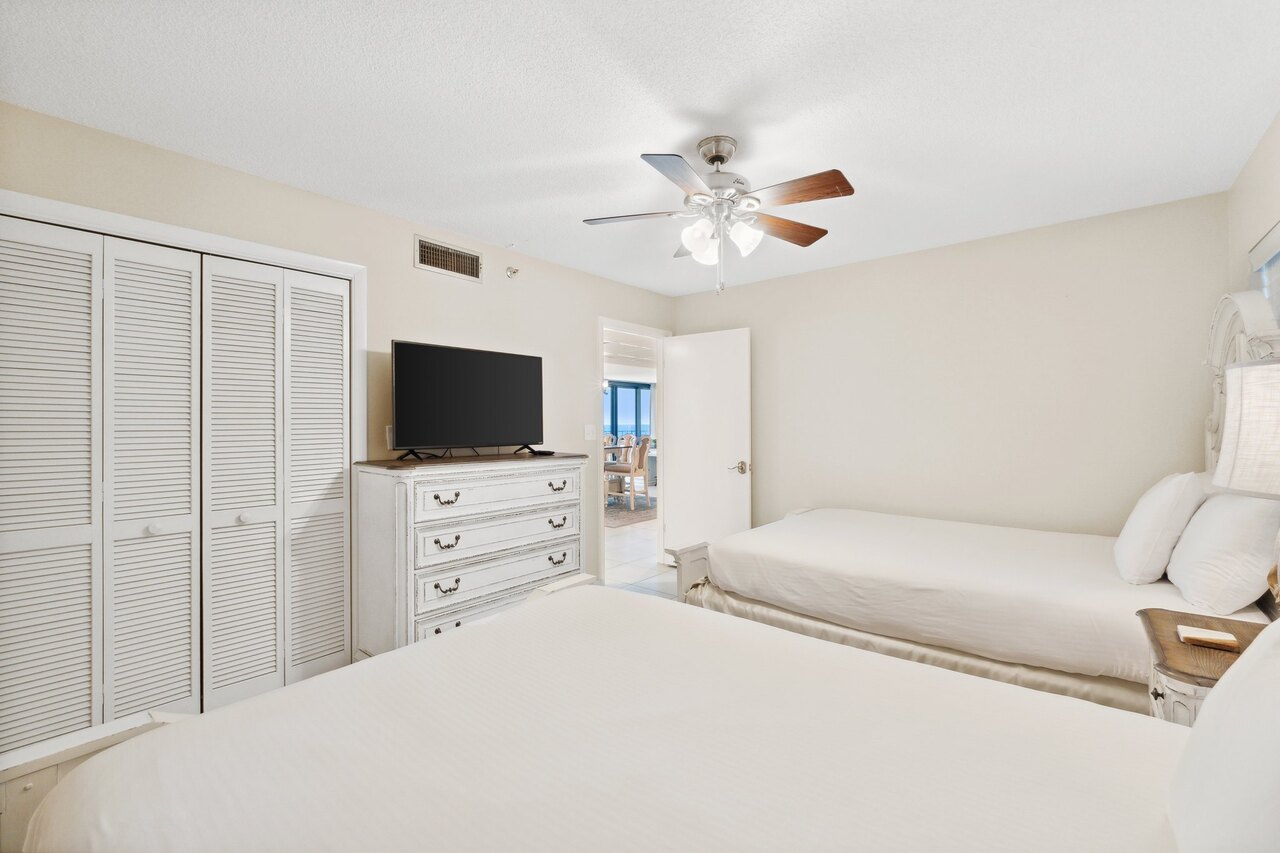 You are going to be delighted when you enter this fantastic, beautifully appointed beach getaway! The entire condo has been upgraded, so you can enjoy every detail that makes it super comfy with plenty of room for eight. The open, spacious living/dining area has full length sliders that look out over the turquoise waters of the Gulf! Even corner windows so you can see the length of the beach! Guests will be required to pay resort for parking for each vehicle, you will receive the link and unit code in your arrival information. Starting 9/23/25 going through 5/13/26 the resort will be doing balcony work, in 2026 they will also be working on street side of the building, pool will be closed from 11/14/25-2/2/26. This 2/2 sleeps eight and lays out like this: *Generously equipped Kitchen including blender, coffeemaker, toaster, crock pot and more! *Gulf Front Master has a King bed with ensuite bath, featuring a single vanity with makeup counter/seating, and a stand alone shower. Private balcony access. 32" TV *Guest room has 2 Queen beds and a 32" TV. *Living room has a Queen sleeper sofa. *Hall Bath has a Tub/Shower combo and a single vanity. *Dining table for 6 and bar seating for 4. *Balcony outfitted with furnishings to relax while soaking up the rays. *There is a Stackable washer and dryer located in the unit and a wine cooler!! About Watercrest Condominium: This elegant 18 story high-rise overlooking the Gulf of Mexico is the perfect family vacation resort that offers great amenities, including a large heated pool with expansive sun decks, clubhouse, lighted tennis courts, exercise rooms, and more. Nearby is St. Andrews State Park, Schooner’s and Captain Anderson’s. You're obviously coming here for the beach, and Watercrest Condominiums overlooks the nicest "backyard" you'll ever sink your feet in. Sugary white sands, emerald green waters... all of the picturesque beauty you've heard about in Panama City Beach is right here. You can enjoy it by sitting back and soaking in the sun while listening to the waves. Or, hit the surf for a splash of adventure! Resort amenities: • Gulf Front Pool (heated) • Tennis Court • Club House • Game Room • Indoor Racquetball Court • Sauna & Fitness Room You must be at least 25 years of age to rent this property. During Spring Break , the minimum acceptable ratio is one (1) person 25 years of age for every two (2) persons under 25 years of age.